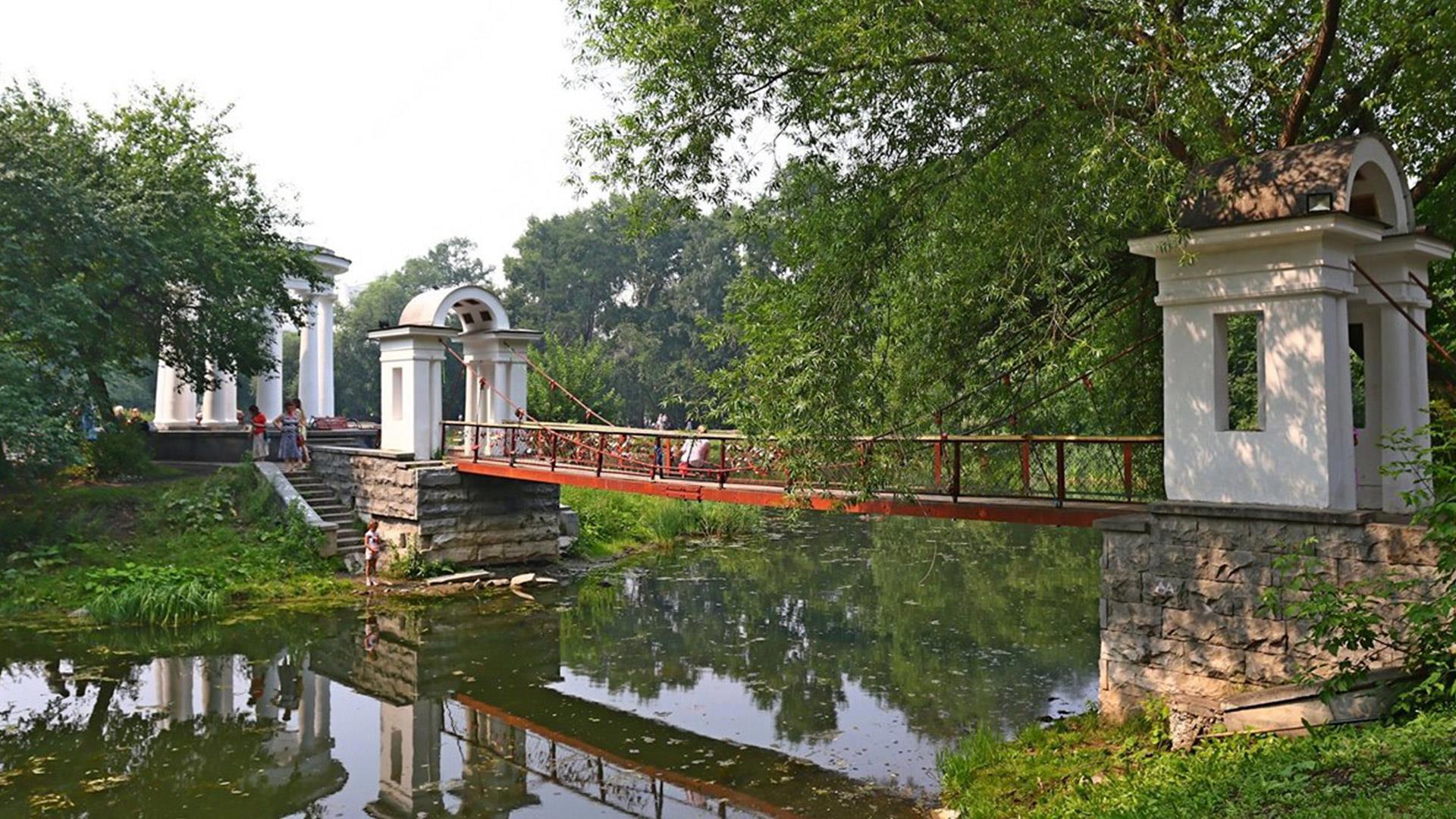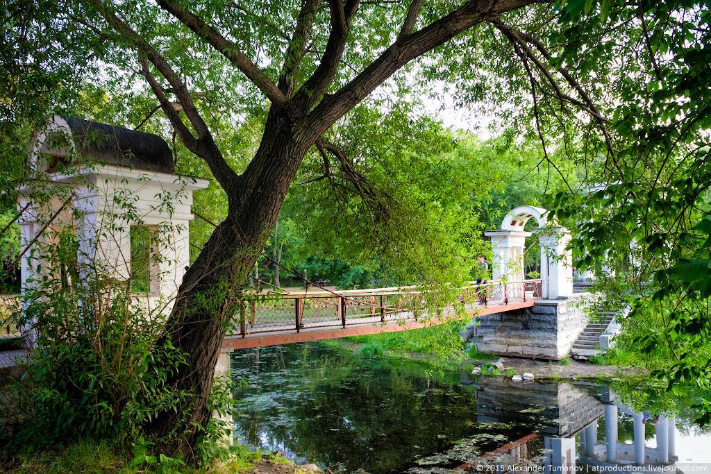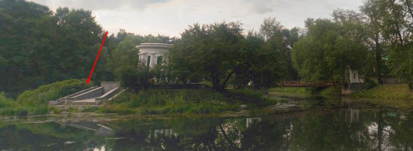 Имея такой милый парк с прудиком и островком можно было бы очень красивое место сделать, но оставили дырявую ротонду, с крепостным мостом и бетонным причалом