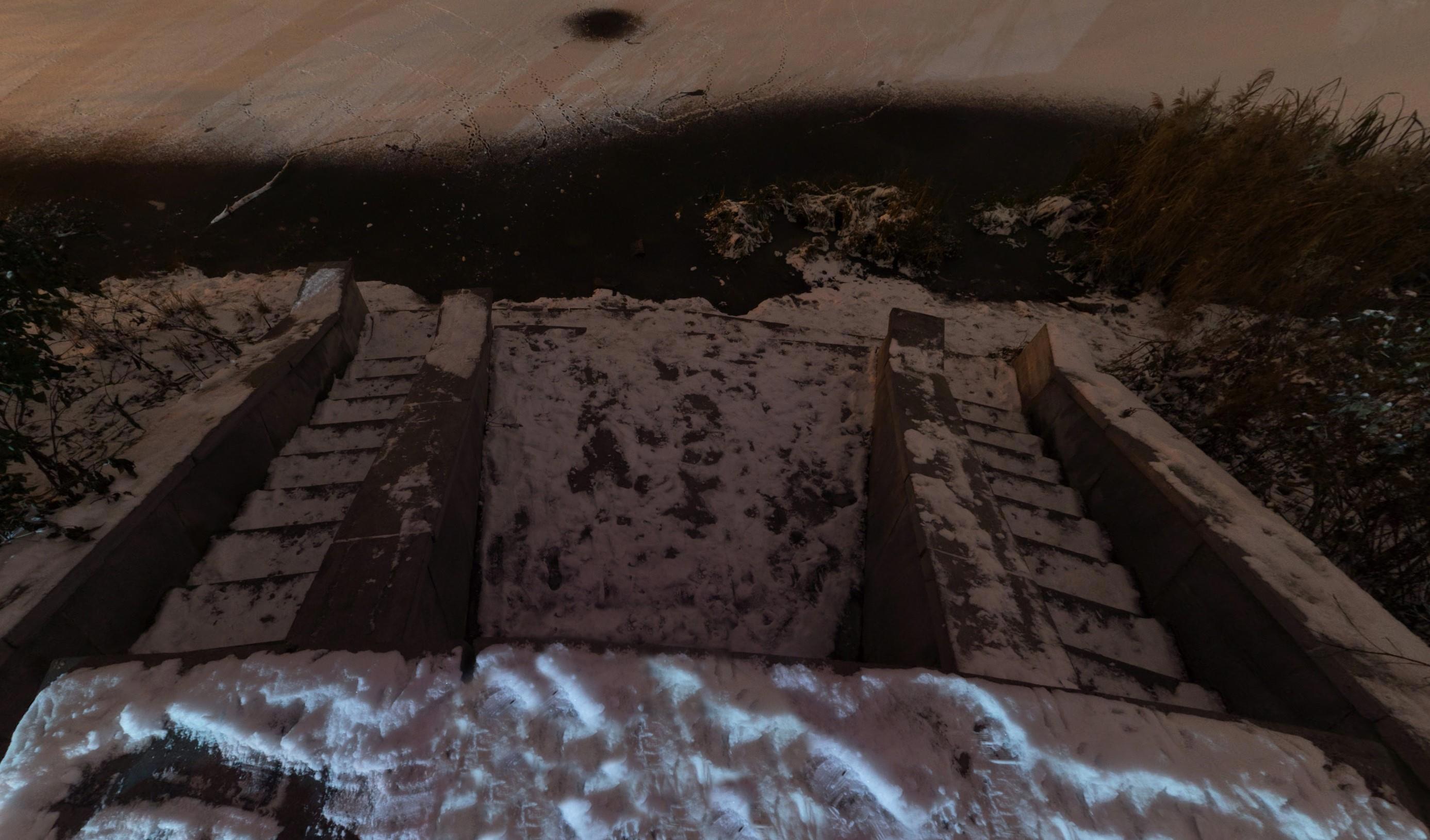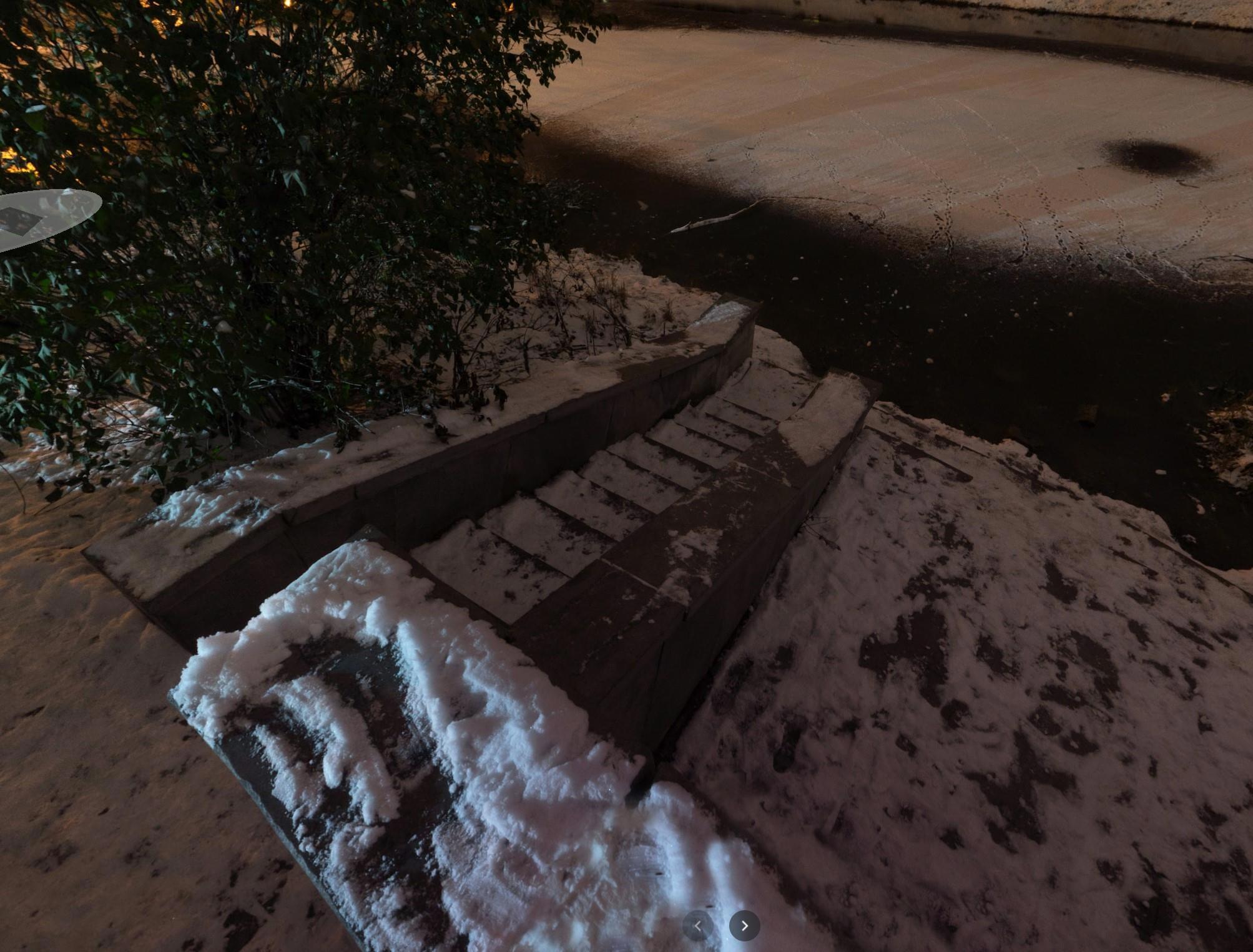 Вот это особенно меня удивило своей бессмысленностью и неудобством для отдыхающих. Организовать некий спуск к воде здесь было бы хорошим решением, идея правильная. Но это не спуск к воде, это выглядит именно декоративным элементом, который не задумывалось использовать и чтобы вообще по нему ходили. По крайней мере эти странные толстые лестницы выглядят массивно, грубо, неудобно, их зачем-то тут аж две, хотя ведут они почти что прямо в воду.. Там нет какой-то удобной площадки чтобы просто на ней постоять, не говоря о том, чтобы посидеть. Есть какой-то каменный пандус… но архитекторы этого чуда кажется были не в курсе, что у нас тут Россия, северная страна, не Греция, чтобы сидеть у воды на камне, к тому же как видно там часто уровень воды поднимается и затапливает эту узенькую площадку и получается, лестницы ведут прямо в воду
