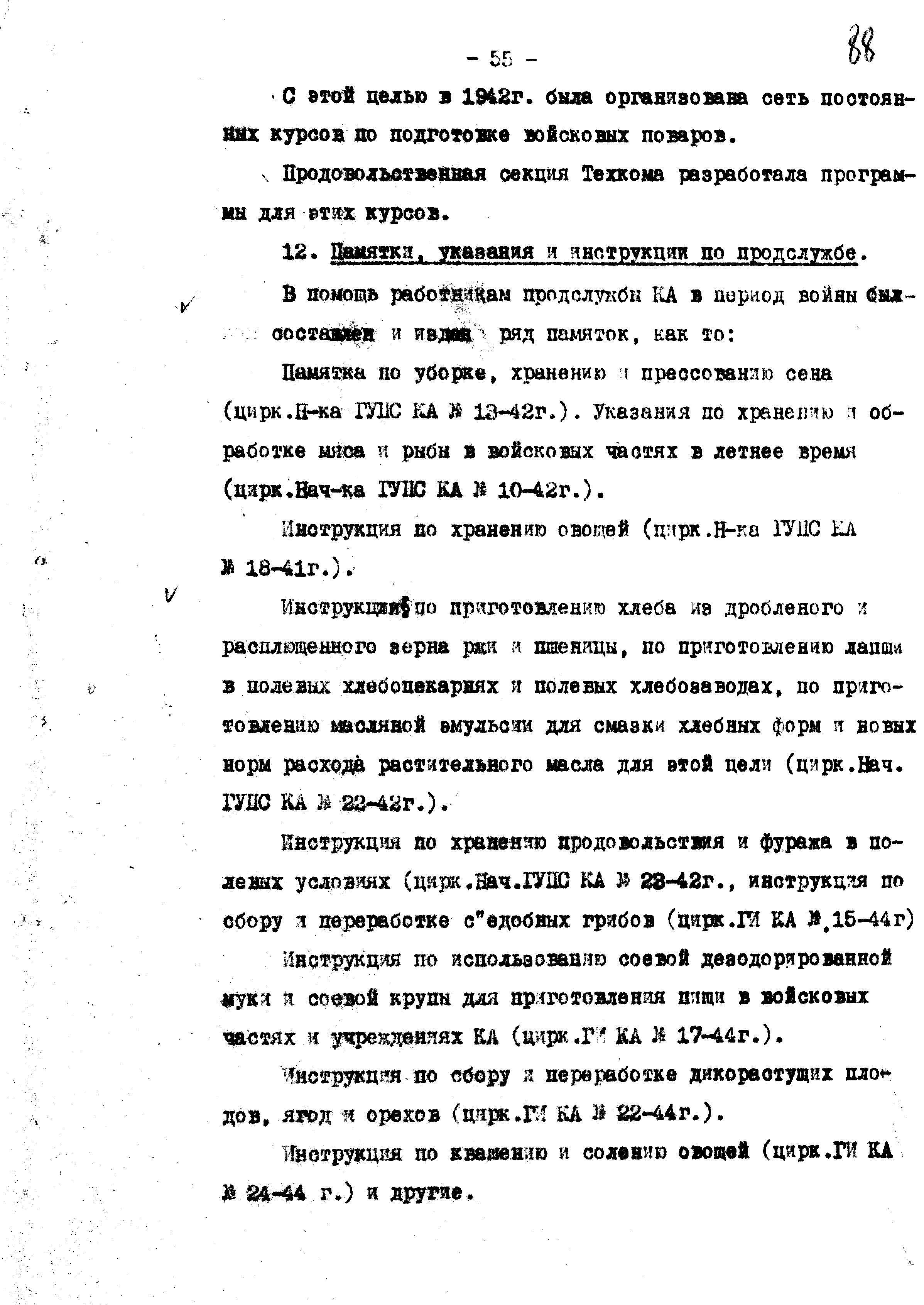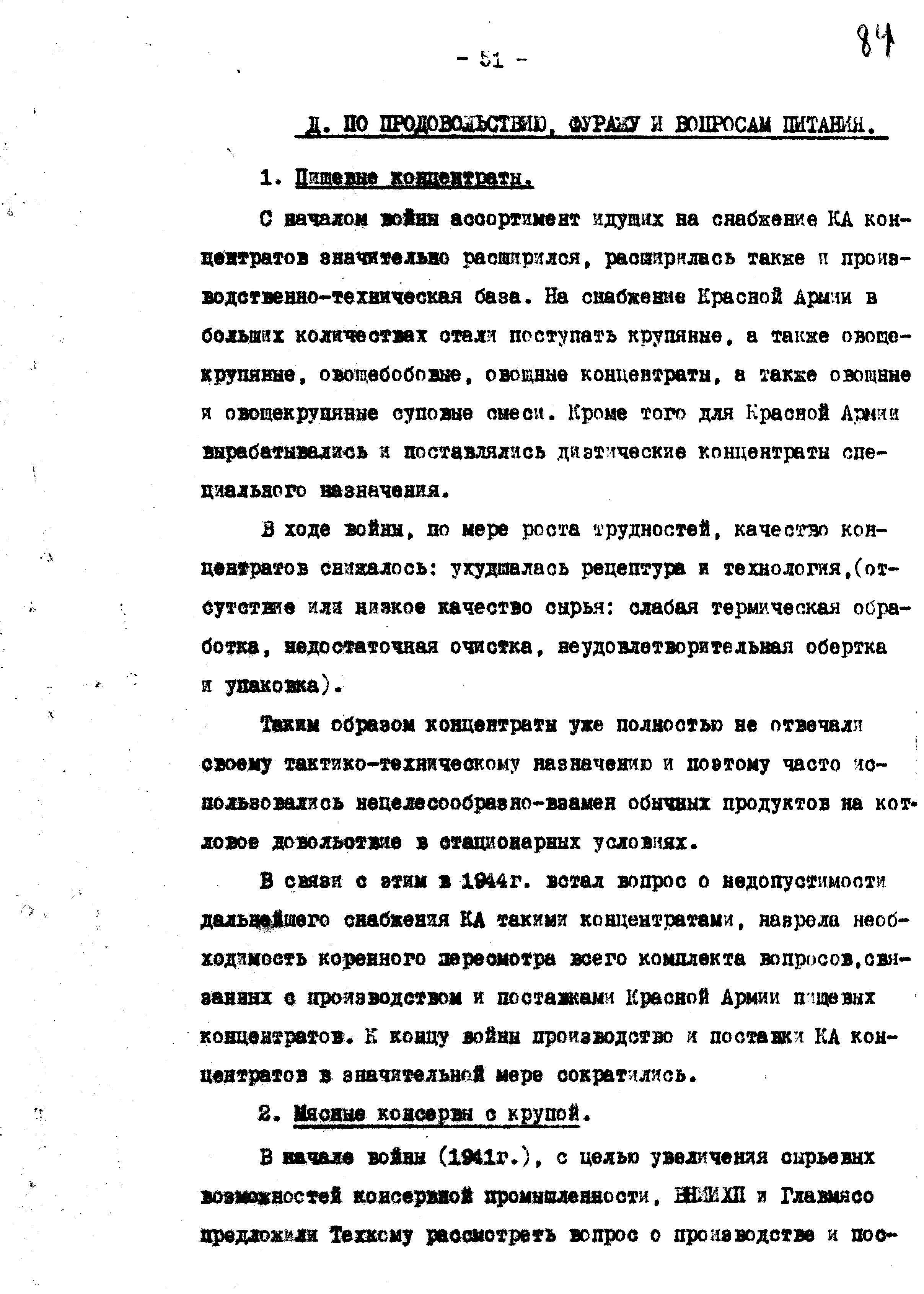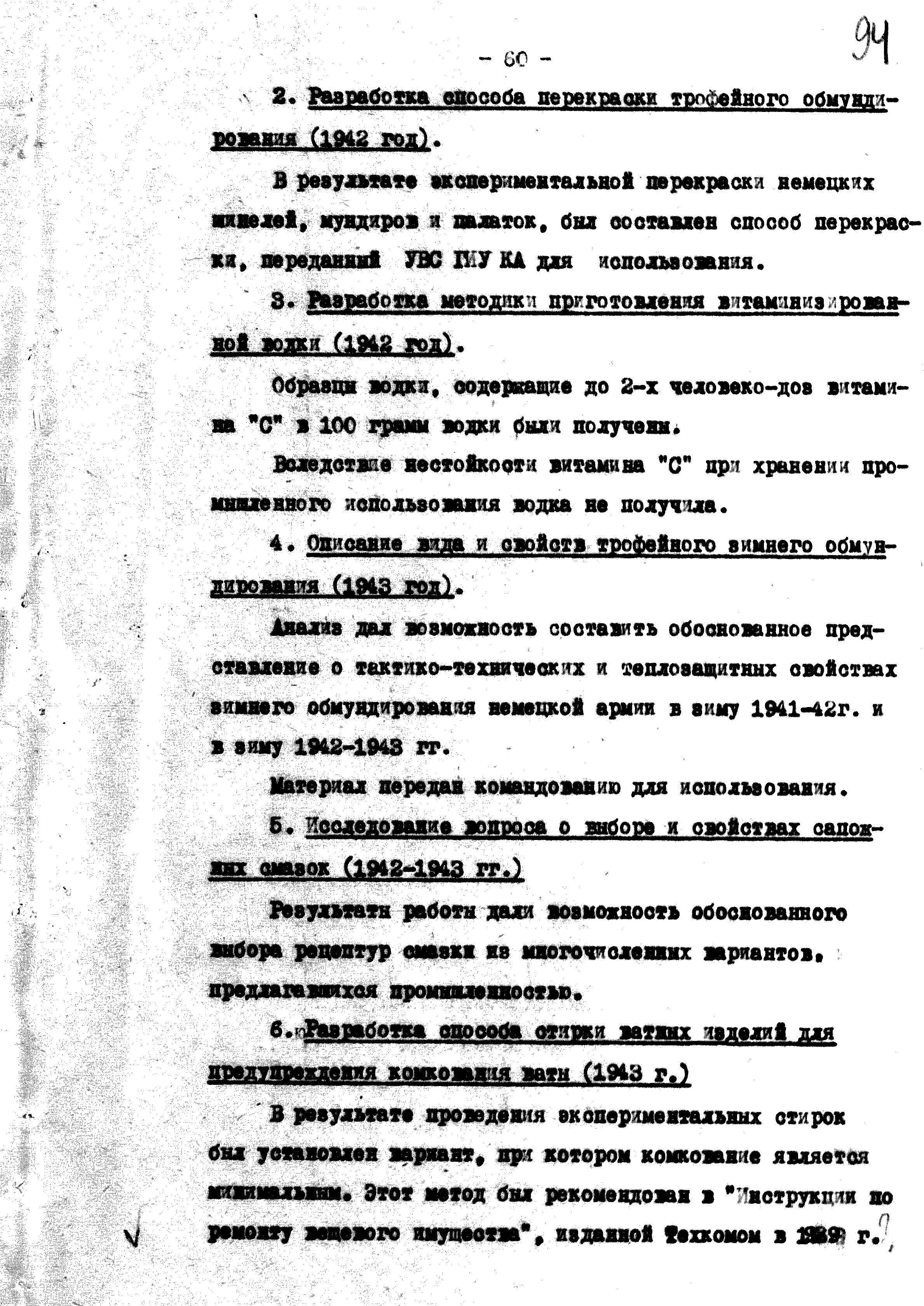 В августе 1944 года, Главный Интендант КА генерал-полковник и/с Драчёв приказал всем интендантским службам и отделам начать работу по подготовке итогового отчета о проделанной работе в годы войны. К окончанию 1946 г. обобщающие материалы были в основном готовы. Помимо итогов, отчёт каждой службы содержал выводы и предложения. Задачей было не только отразить всю проделанную работу, но и показать допущенные при этом ошибки, тупиковые пути, чтобы избежать их впредь. Увы, но в полной мере использовать горький опыт предков не получилось. В 1950-х, после очередной "реформы" документы были сданы в архив, где и лежали не востребованными до недавнего времени. К сожалению, часть отчётов скорее всего безвозвратно утрачена, находятся только отдельные следы проведенной работы.