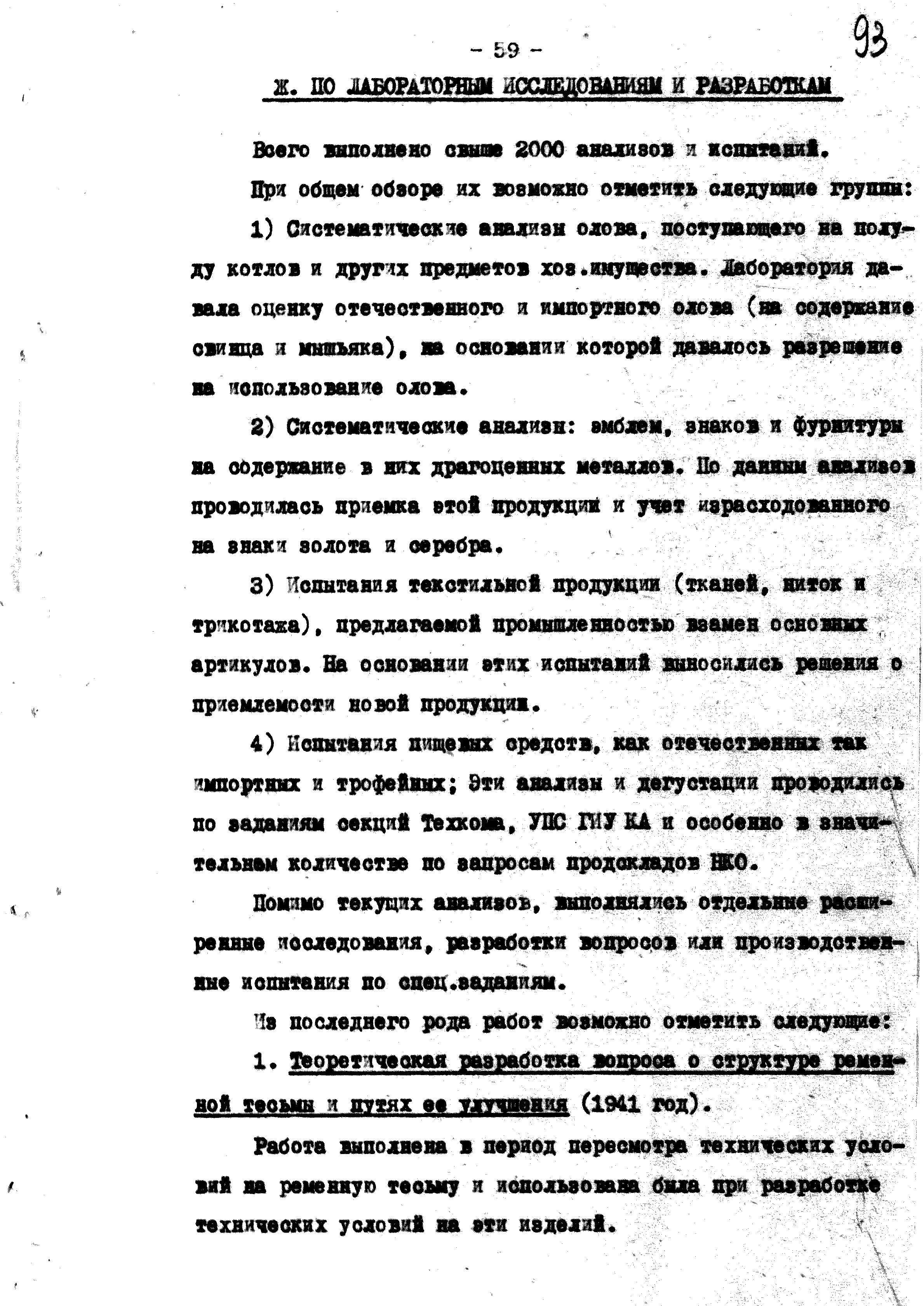 И в завершении - кратко о работах, проведённых Лабораторией Техкома. Но, даже несколько листов отчёта дают представление о значительной, важной и огромной работе, проведённой ее работниками: от экспертизы импортной обуви до испытания продуктов.