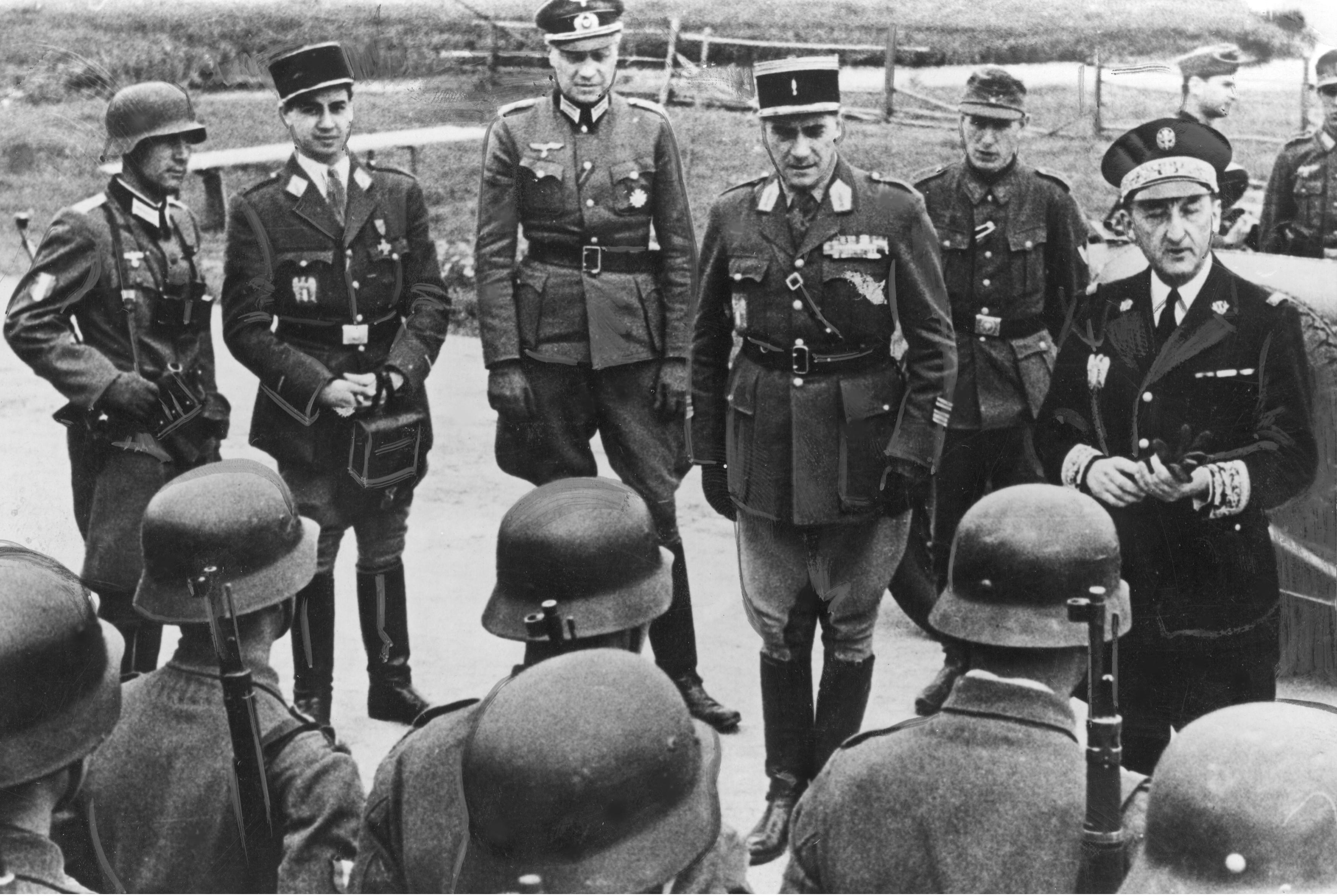 Октябре 1940 года, после личной встречи с Гитлером, маршал Петен призвал народ Франции, сотрудничать с нацистами, чем большая часть и занялась, воспетое позже сопротивление, была даже более беззубое, чем итальянские партизанские бригады, однако Италию почему-то не признают страной победительницей, хотя сопротивление там было более активное, особенно в горах. Режим Виши работал в русле германской политики, якобы нейтральный, но проводил репрессии против евреев и коммунистов. Работал совместно с СС и гестапо. Была создана дивизия СС Charlemagne .