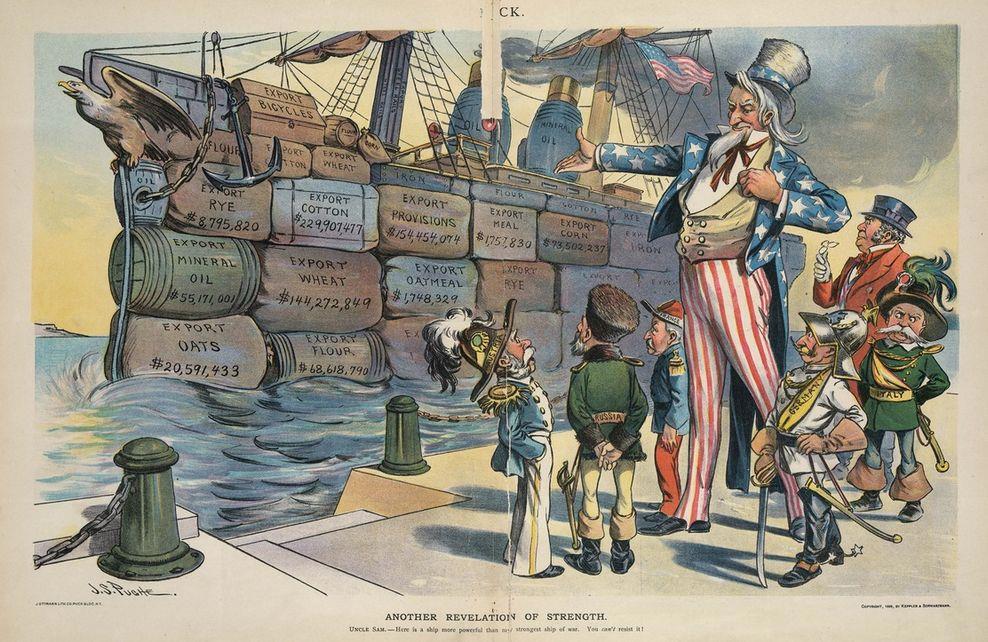 (Дяд Сэм, как кузен Джон Буля отлично научился извлекать прибыль из чужих войн. И чужие войны куда доходнее, чем просто торговля.)