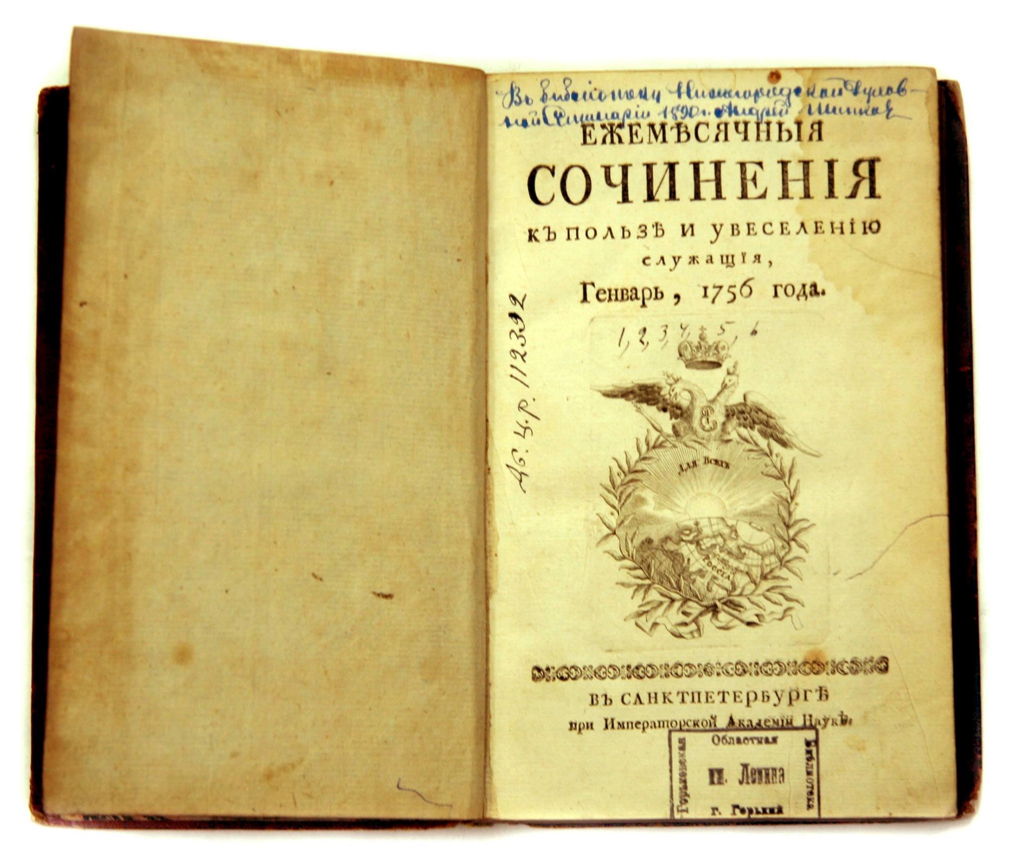Первый российский журнал — Ежемесячные сочинения к пользе и увеселению служащих (Санкт-Петербург, 1755, январь)
