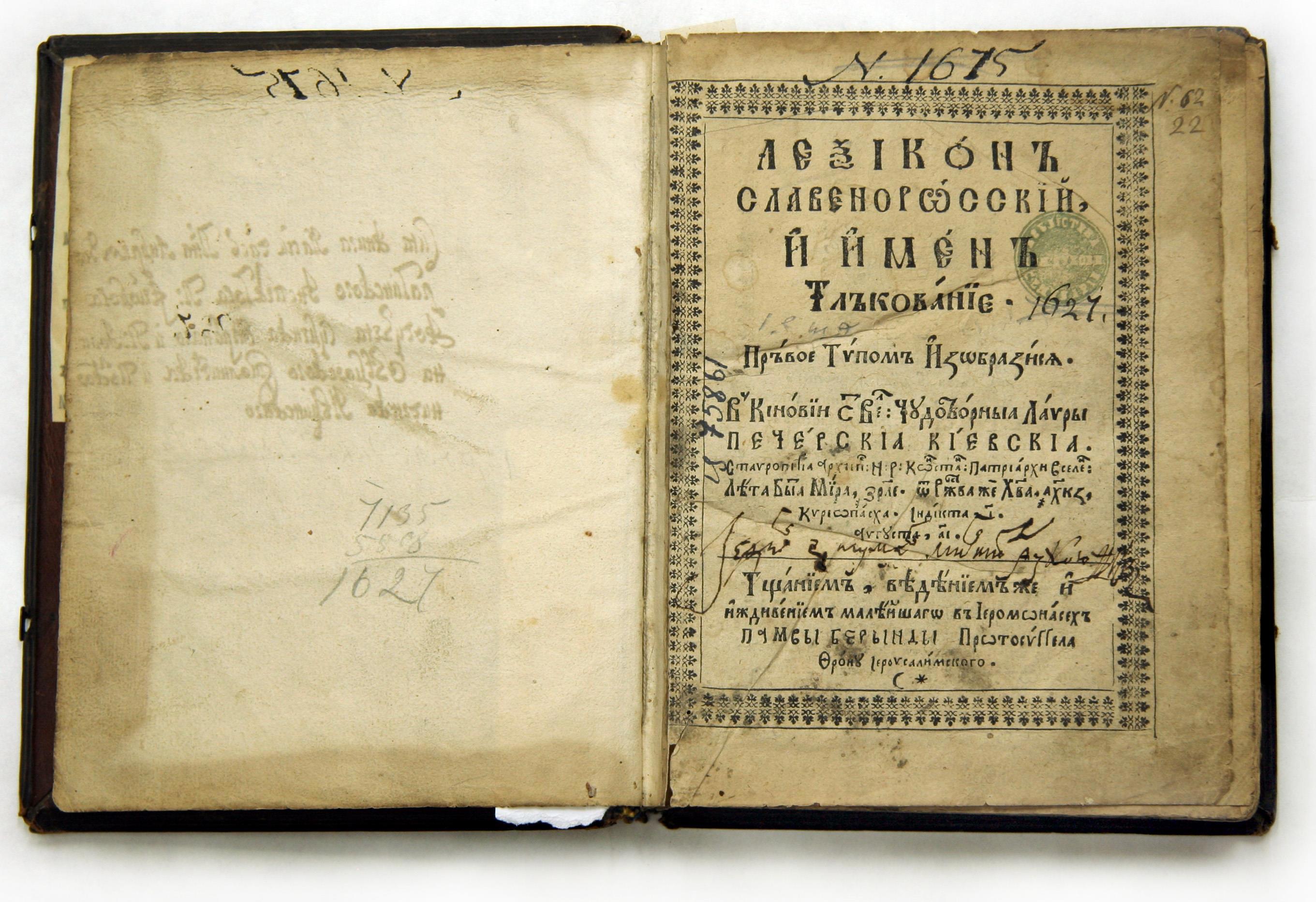 Один из первых значительных восточнославянских словарей, содержащий около 7000 слов ― Памва Берында. Лексикон славеноросский и имен толкование (Киев, 1627.)