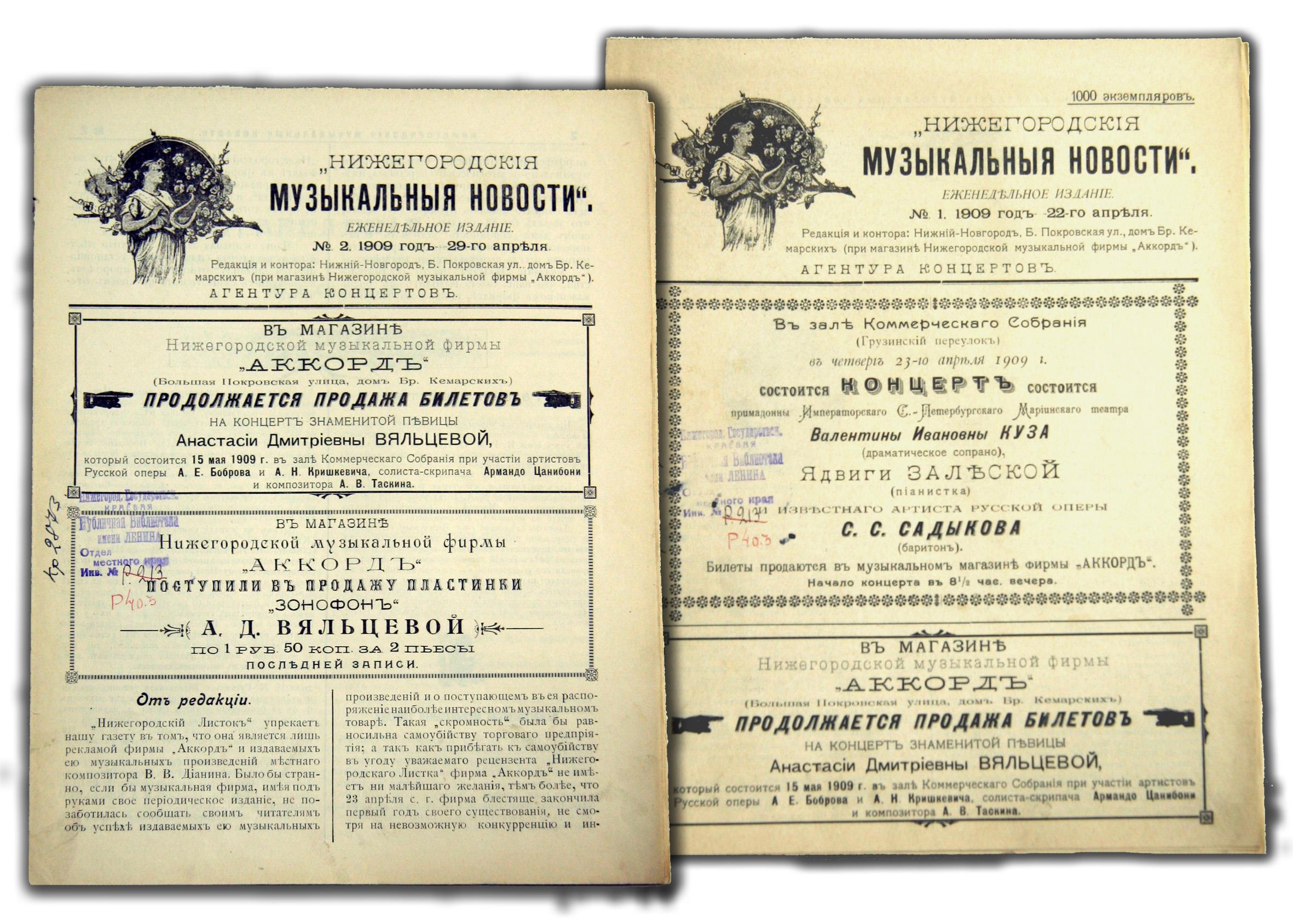 Единственное в Н.Новгороде музыкальное периодическое издание выходило в 1909–1912 гг. и называлось ― «Нижегородские музыкальные новости». Вышло всего 20 номеров.