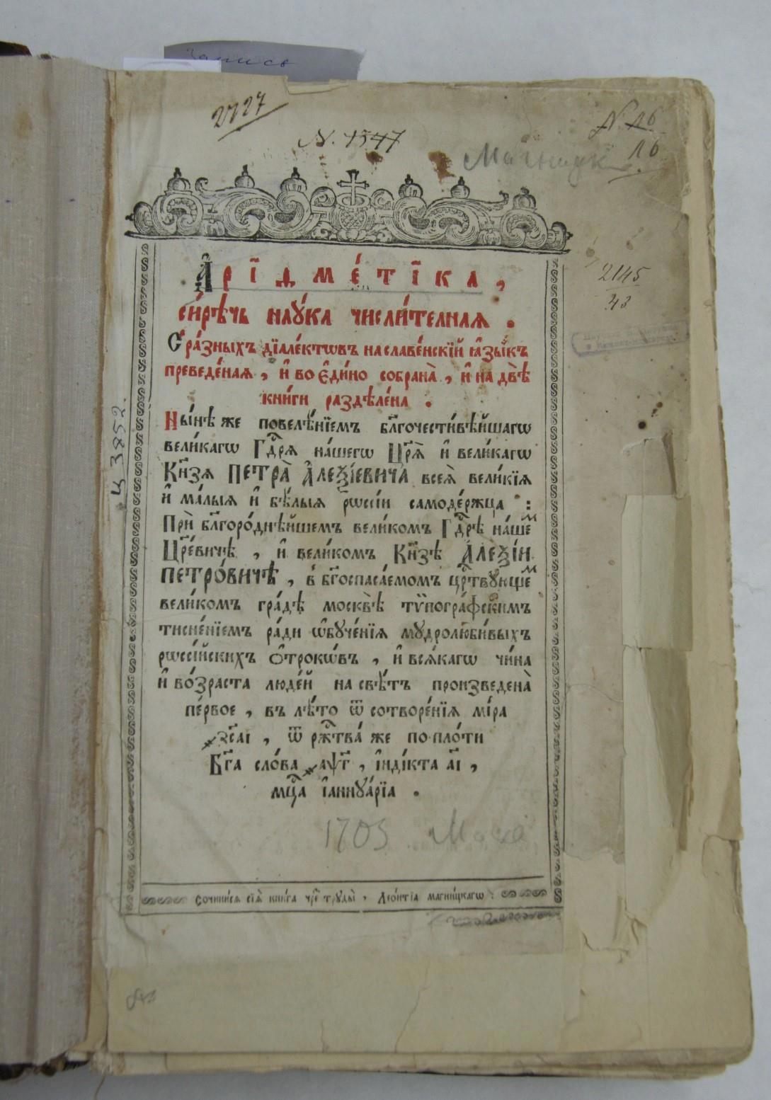 Магницкий Л.Ф. Арифметика, сиречь наука числительная (Москва,1703)