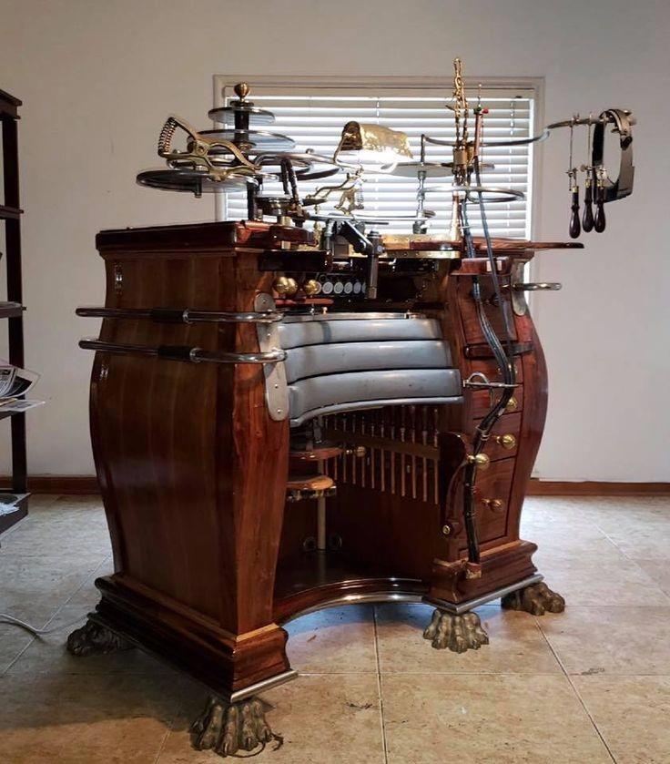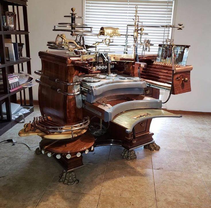 Это рабочее место ювелира! Удивительный стол, фото которого разошлись по миру и никто не знает, где и кем он сделан, на самом деле создан группой умельцев в Симферополе. В 21 веке! Они купили в Европе полуразвалившийся старинный антикварный секретер и сделали из него на заказ этот чудный ювелирный верстак. И сейчас в Европе кто-то пользуется этим чудом