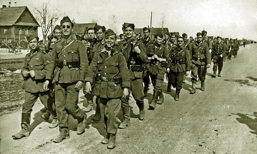 Короче Испания Франко, хотела дохрена, но мало чего могла предложить, в основном из-за этого и неготовности Испании к глобальной войне и не сложилось. Начало войны с СССР Франкисты встретили с диким восторгом. Вступить в полноценную войну они все еще не могли, но желание повоевать имелось Количество добровольцев воевать с СССР зашкаливало, их было настолько много, что из их числа в сжатые сроки в 41 году создали голубую дивизию, она же 250 пехотная дивизия вермахта, хотя сама Испания вроде бы, как и не воевала с СССР. Также на восточных фронт испанцы перебросили и часть своей авиации, то же типа добровольцы, а самолеты видимо на сдачу от мадеры прикупили. Кроме того испанцы помогали Германии чем могли ресурсами, особенно вольфрамом.
