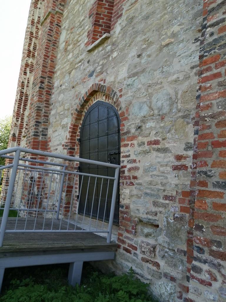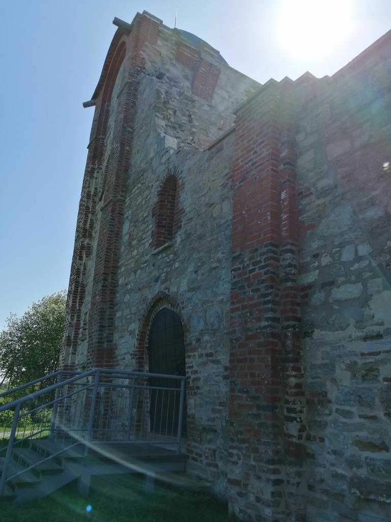 А это руина перестроенного княжеского храма 1342 года и уникальная "падающая" дверь: