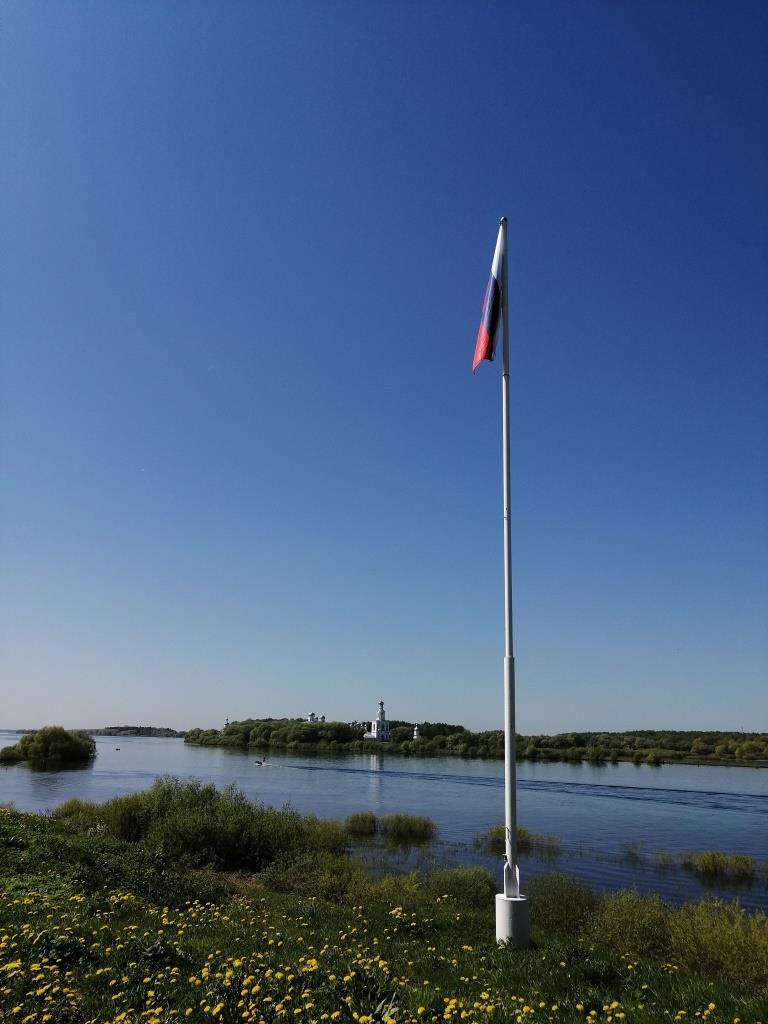 Флаг, видимо, призван означать, что отсель пошла земля русская (вообще-то она из Старой Ладоги сначала "пошла", если уж на то пошлО, но пара лет погоды не делают).