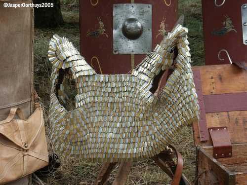 цитата из Аммиана Марцеллина о роговых панцирях: «Они вооружены длинными пиками, носят панцири из нарезанных и выглаженных кусочков рога, нашитых наподобие перьев на льняные рубашки...»