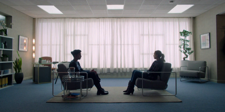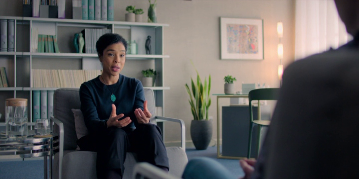 Структура сериала очень интересная. Предпоследняя серия - это Джой на сеансе психоаналитика. То есть 50 минут мы смотрим и слушаем, как профессиональный психолог работает, раскручивает проблемы Джой. 50 минут два человека сидят на стульчиках друг перед другом и разговаривают, а перед нами разворачивается вся жизнь Джой, весь масштаб ее проблемы и глубинные причины.