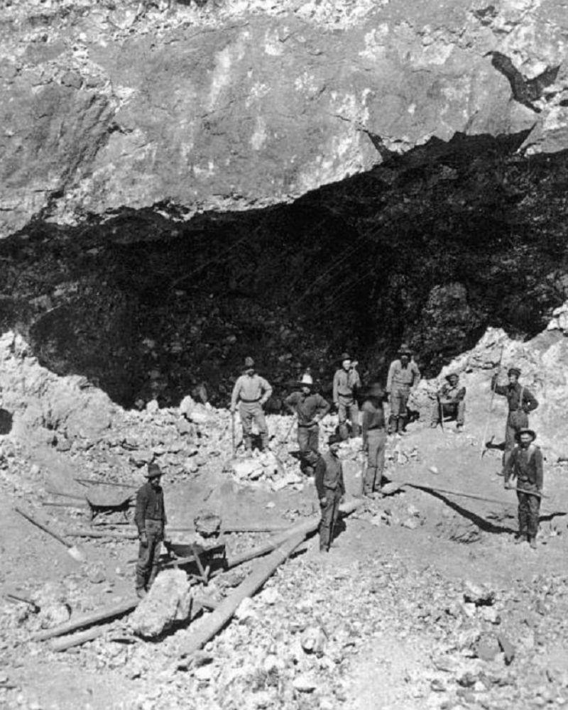 Люди быстро обнаружили, что шахты полны серебра, и были готовы на все, чтобы заполучить в свои руки хороший материал. Эта фотография была сделана на глубине 900 футов под землей, поскольку у фотографа не было ничего, кроме горящей магниевой проволоки для освещения. В то время в городе проживало 25 000 человек. Однако по мере того, как серебро истощалось, то же самое происходило и с жителями.