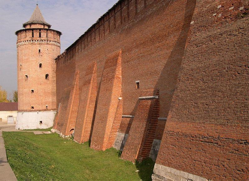 Угловая башня и фрагмент кремлевской стены в Коломне Московской области.