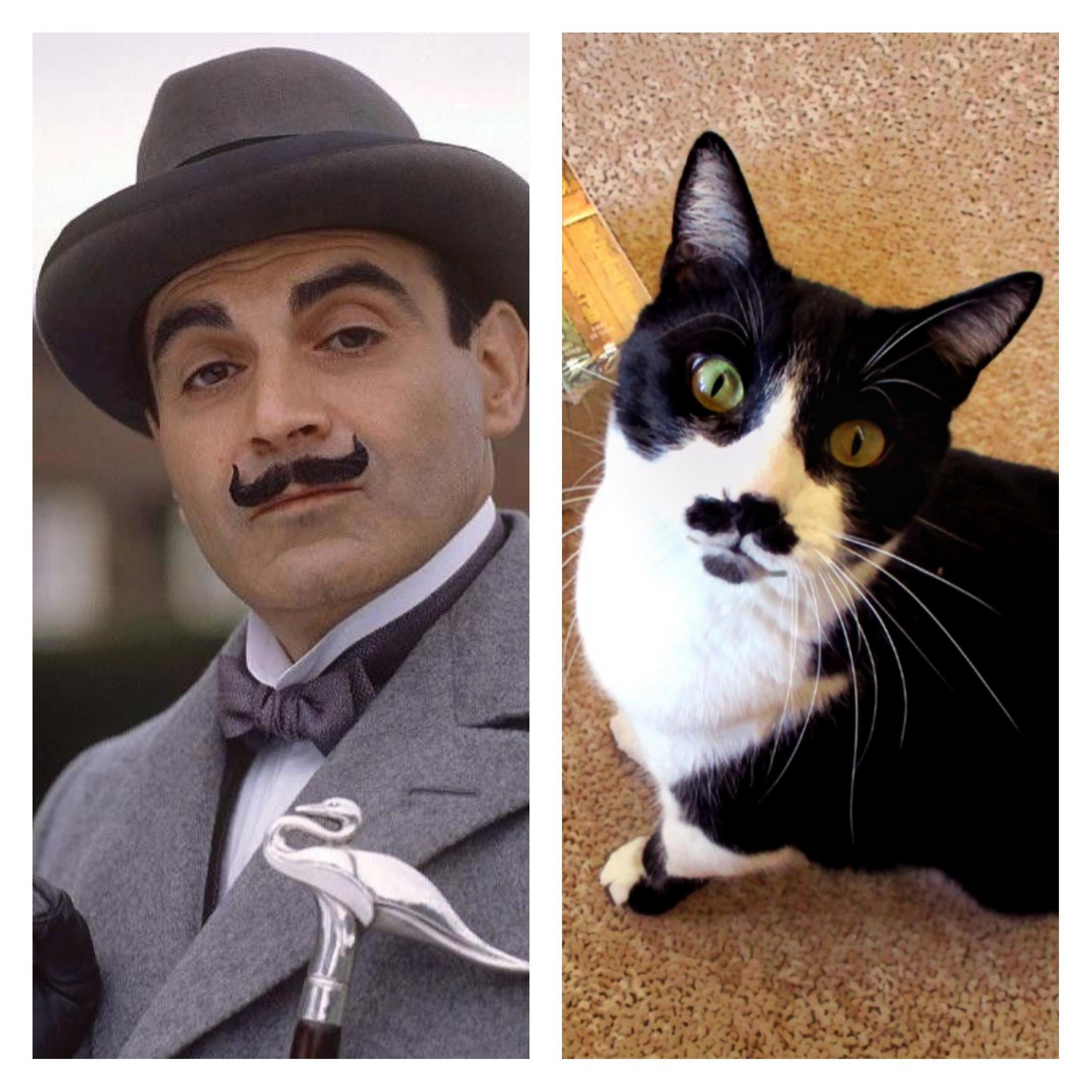 Одна милая леди из Аризоны прислала мне фото своего кота. Его зовут Месье. Заметил забавное сходство с неким настоящим месье - актером Дэвидом Суше в роли Эркюля Пуаро.