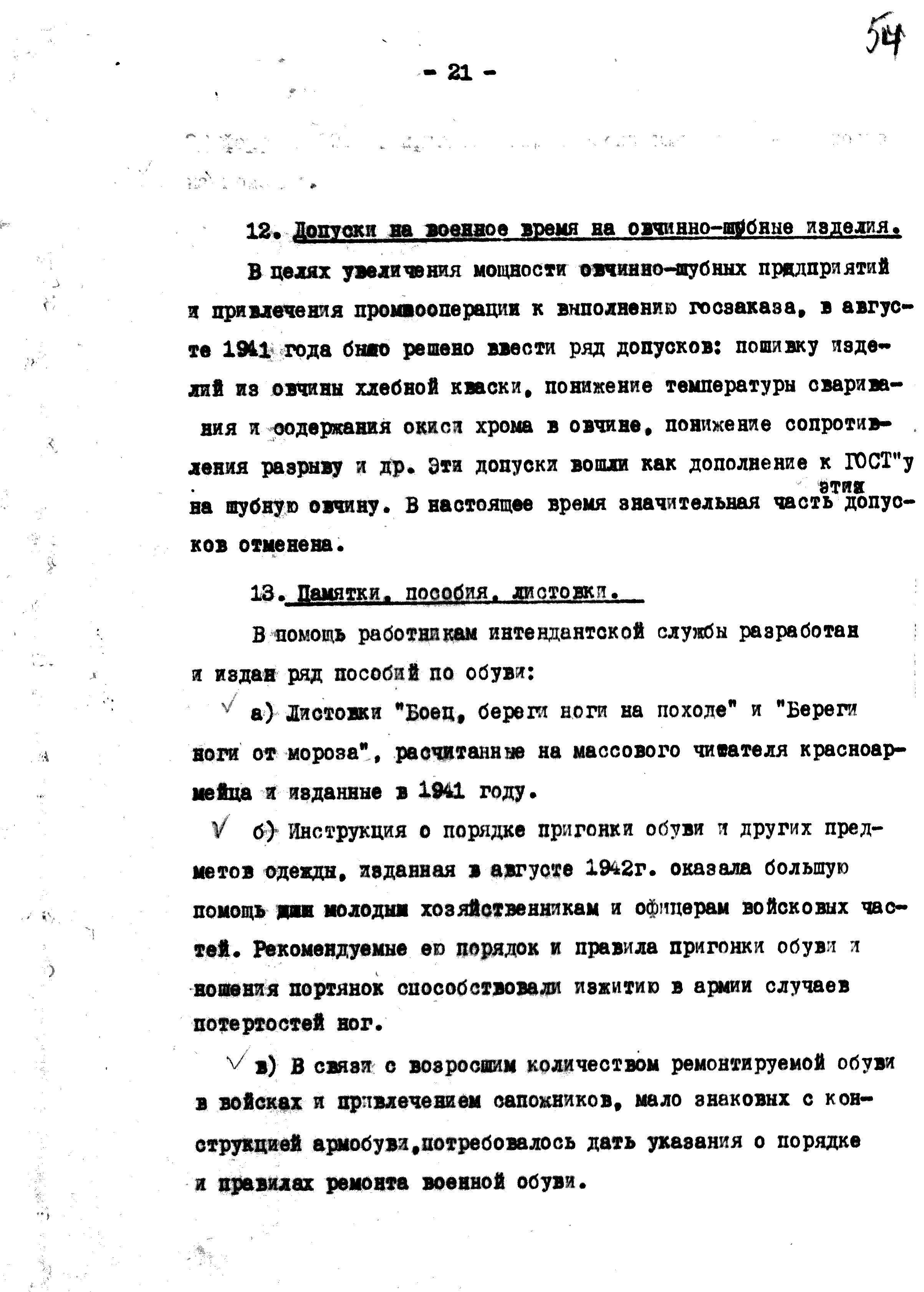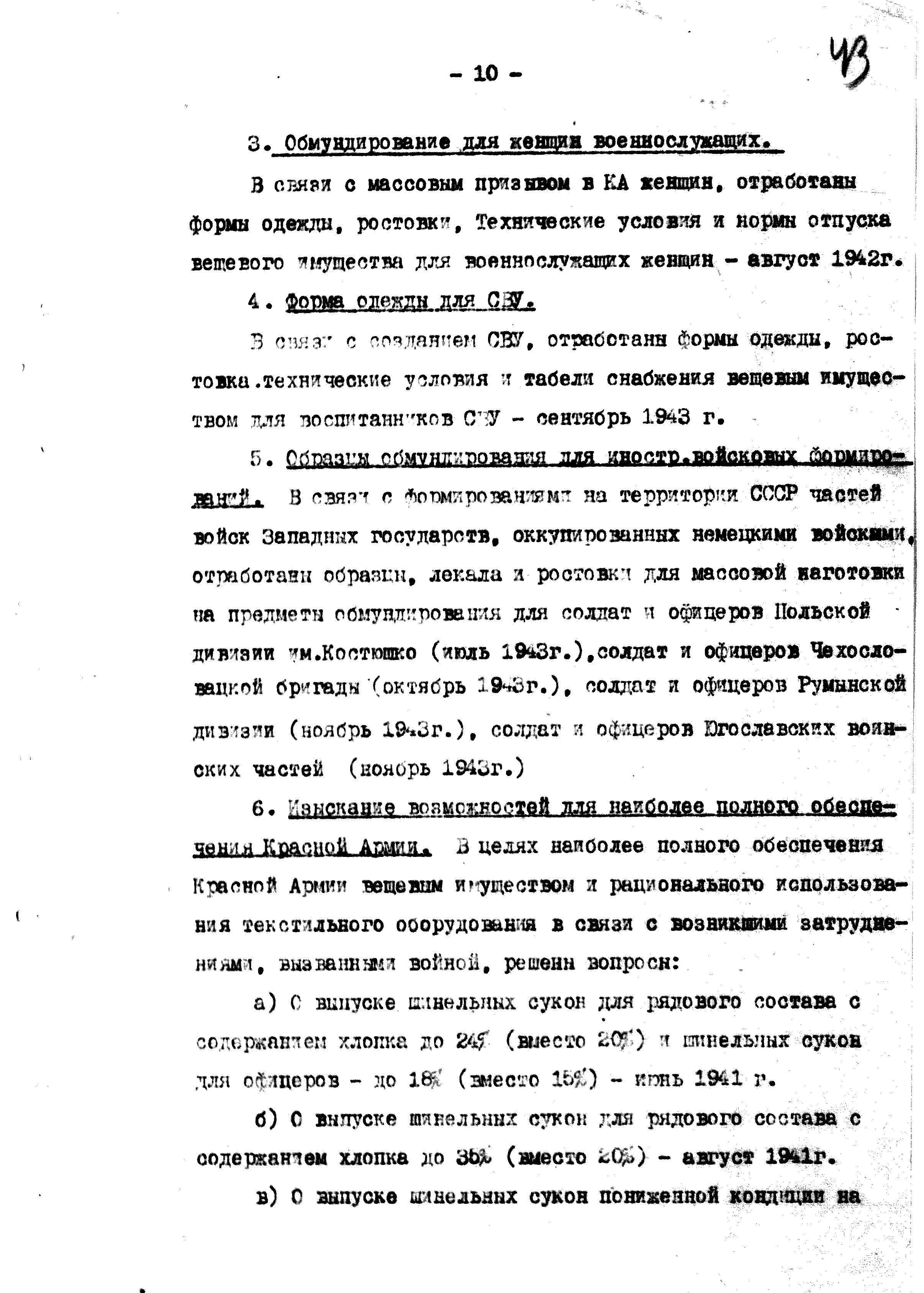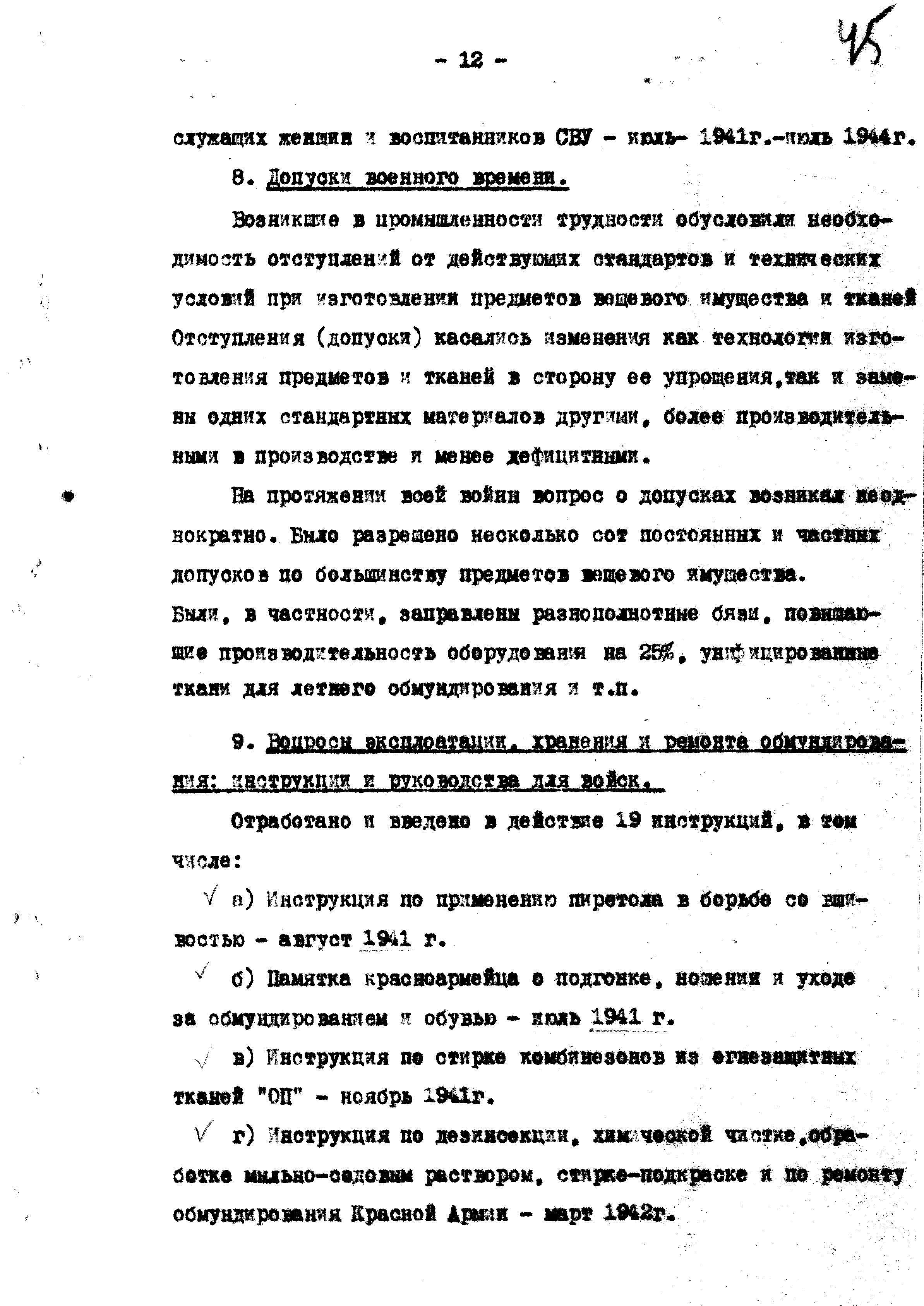 Краткий отчёт Техкома Интендантского управления 1945 г. Обмундирование и снаряжение