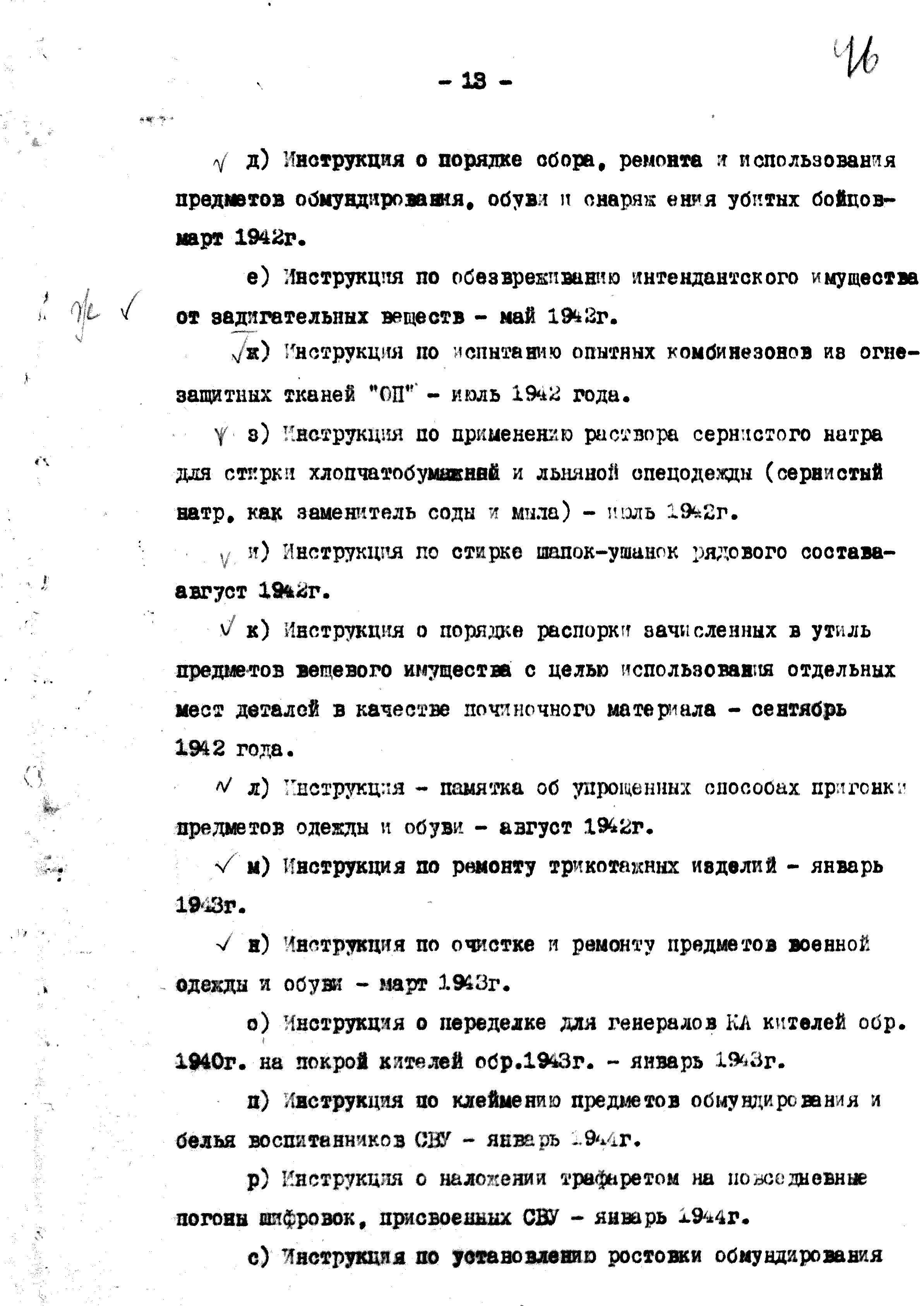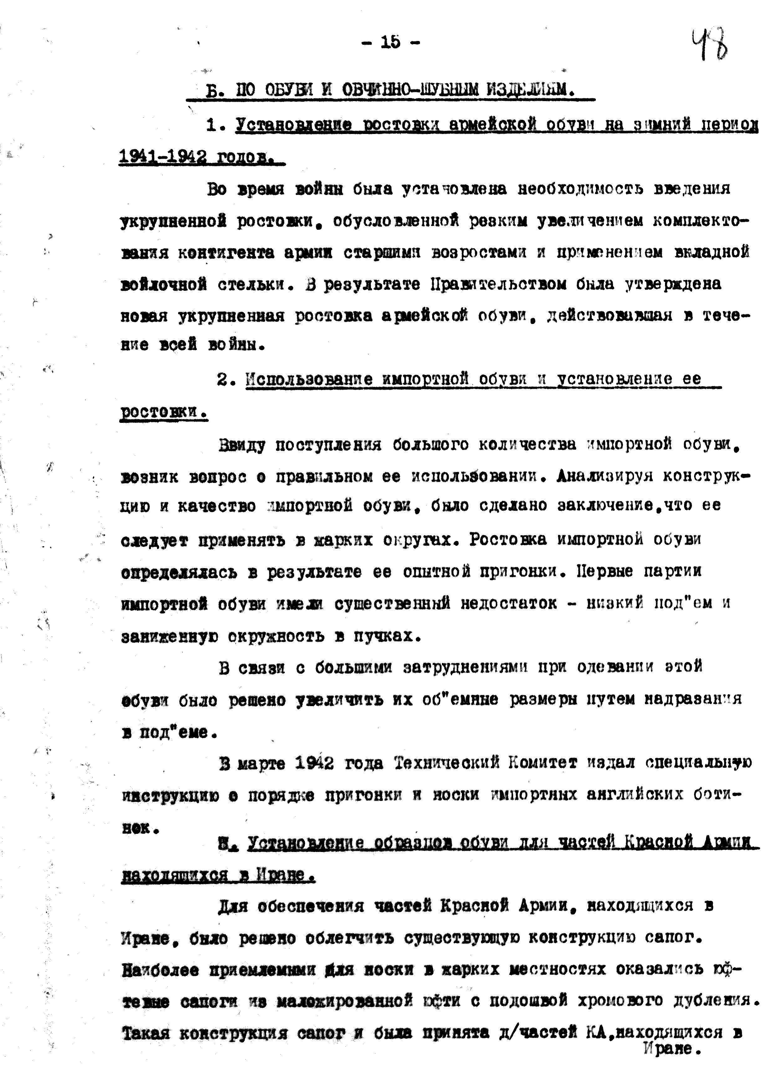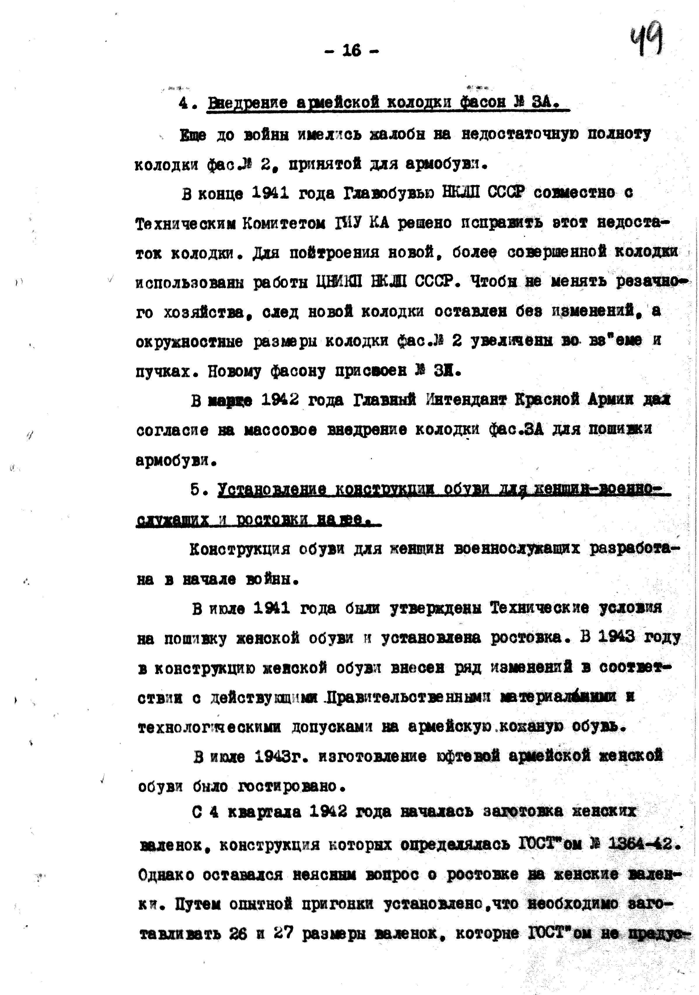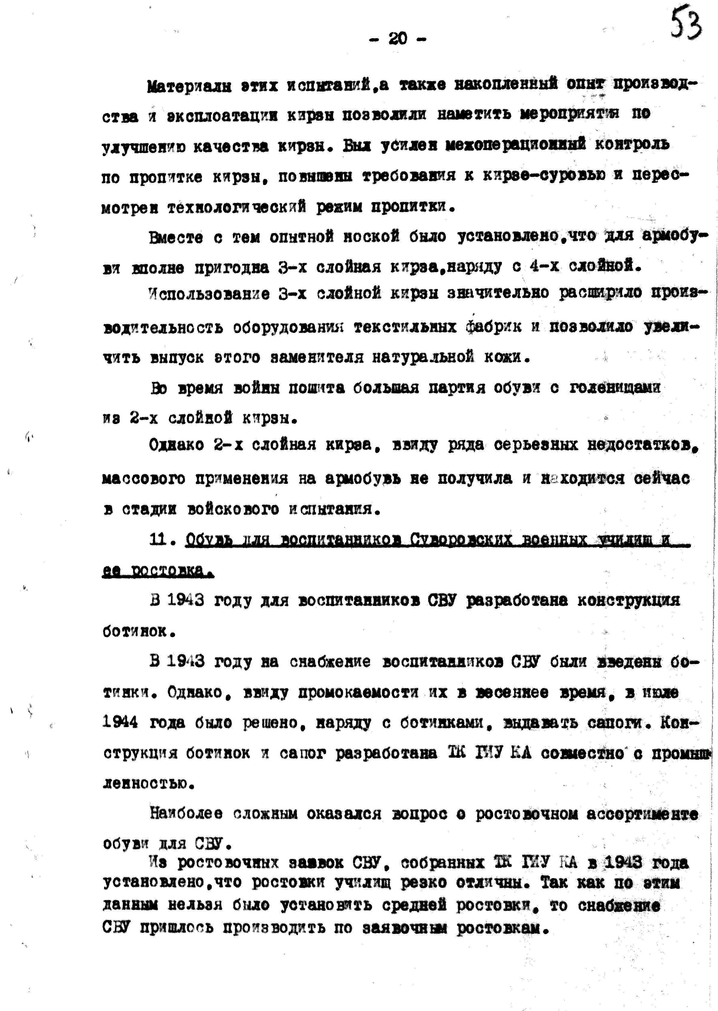 Краткий отчёт Техкома Интендантского управления 1945 г. Обмундирование и снаряжение