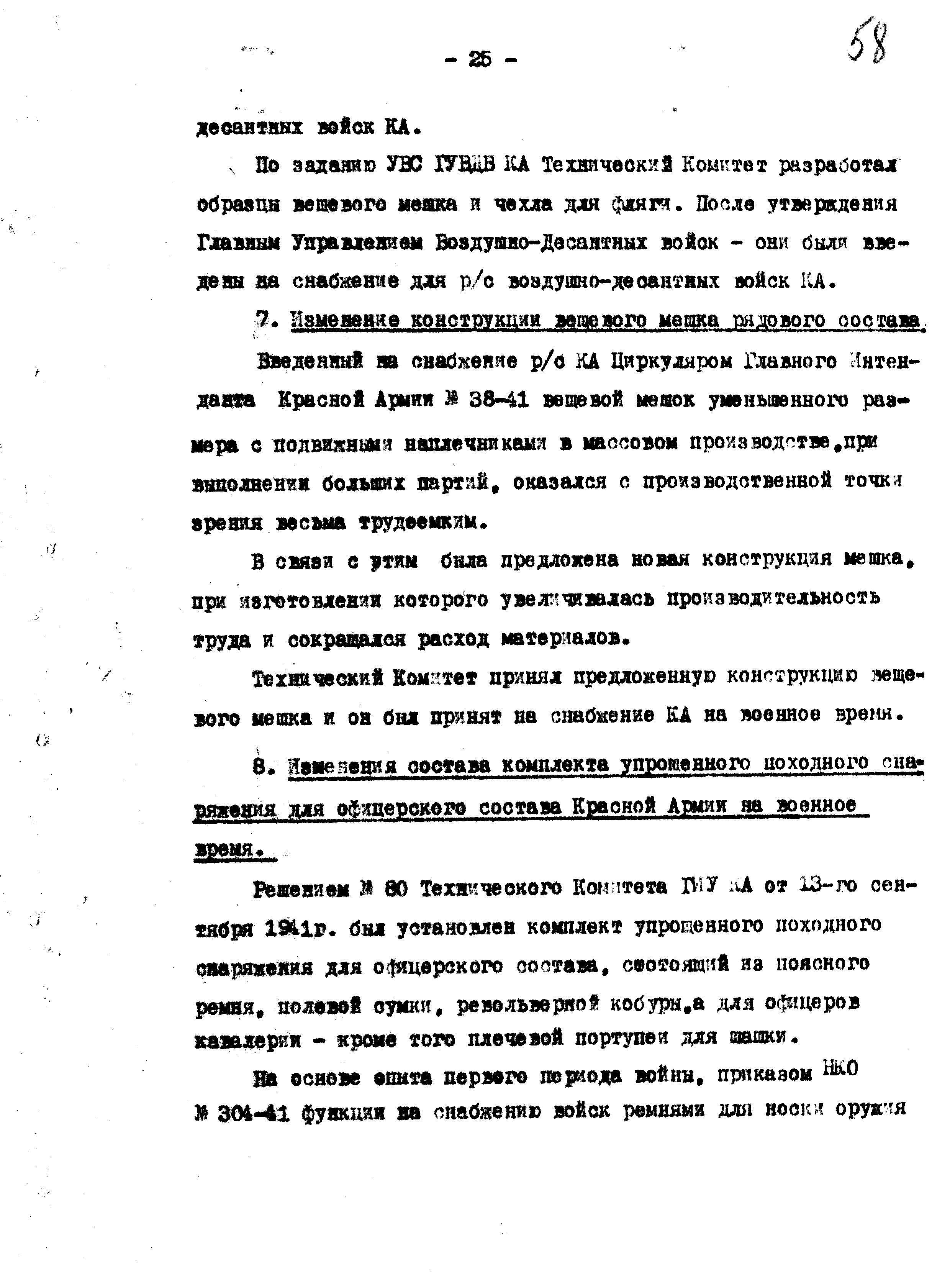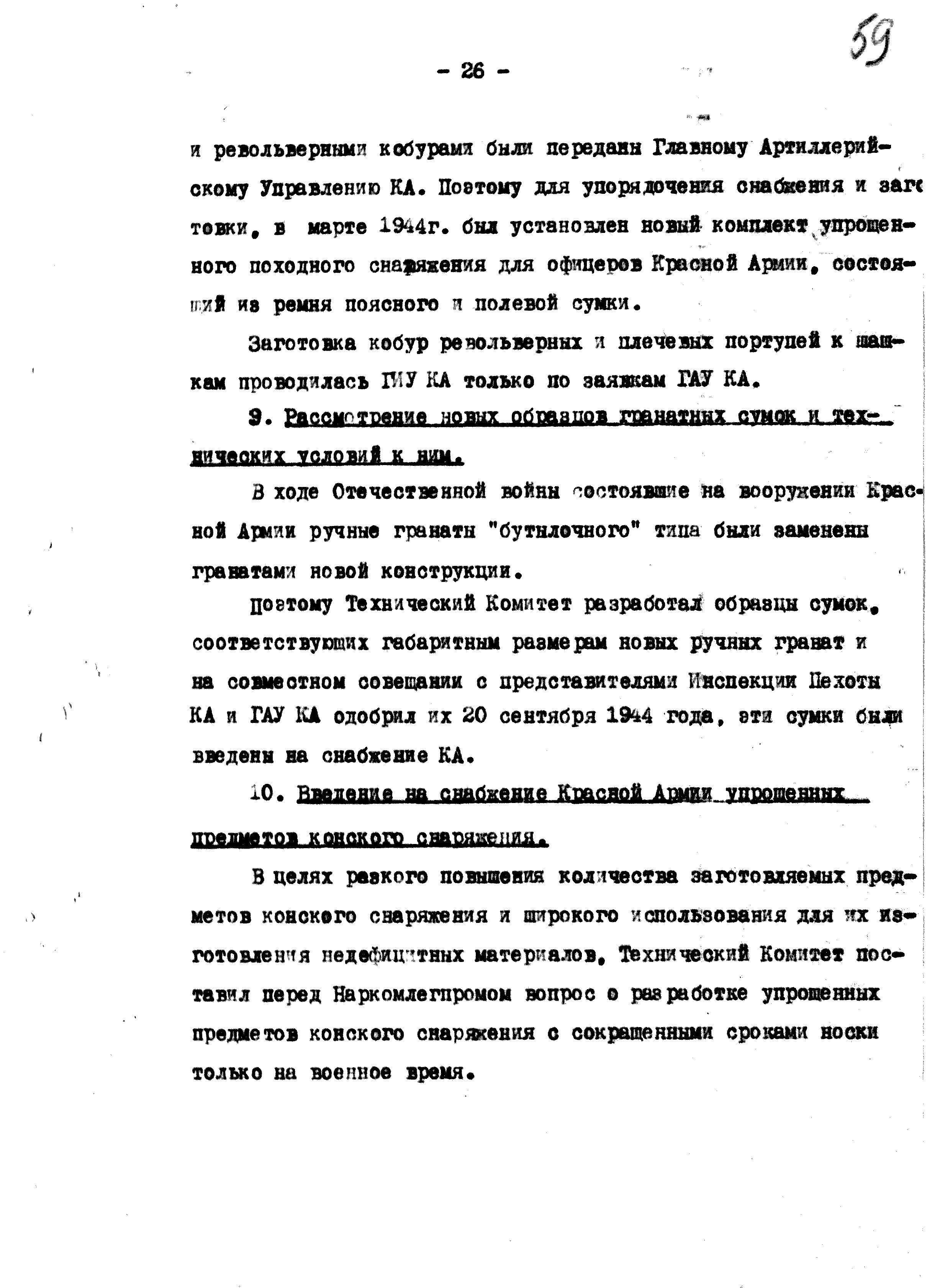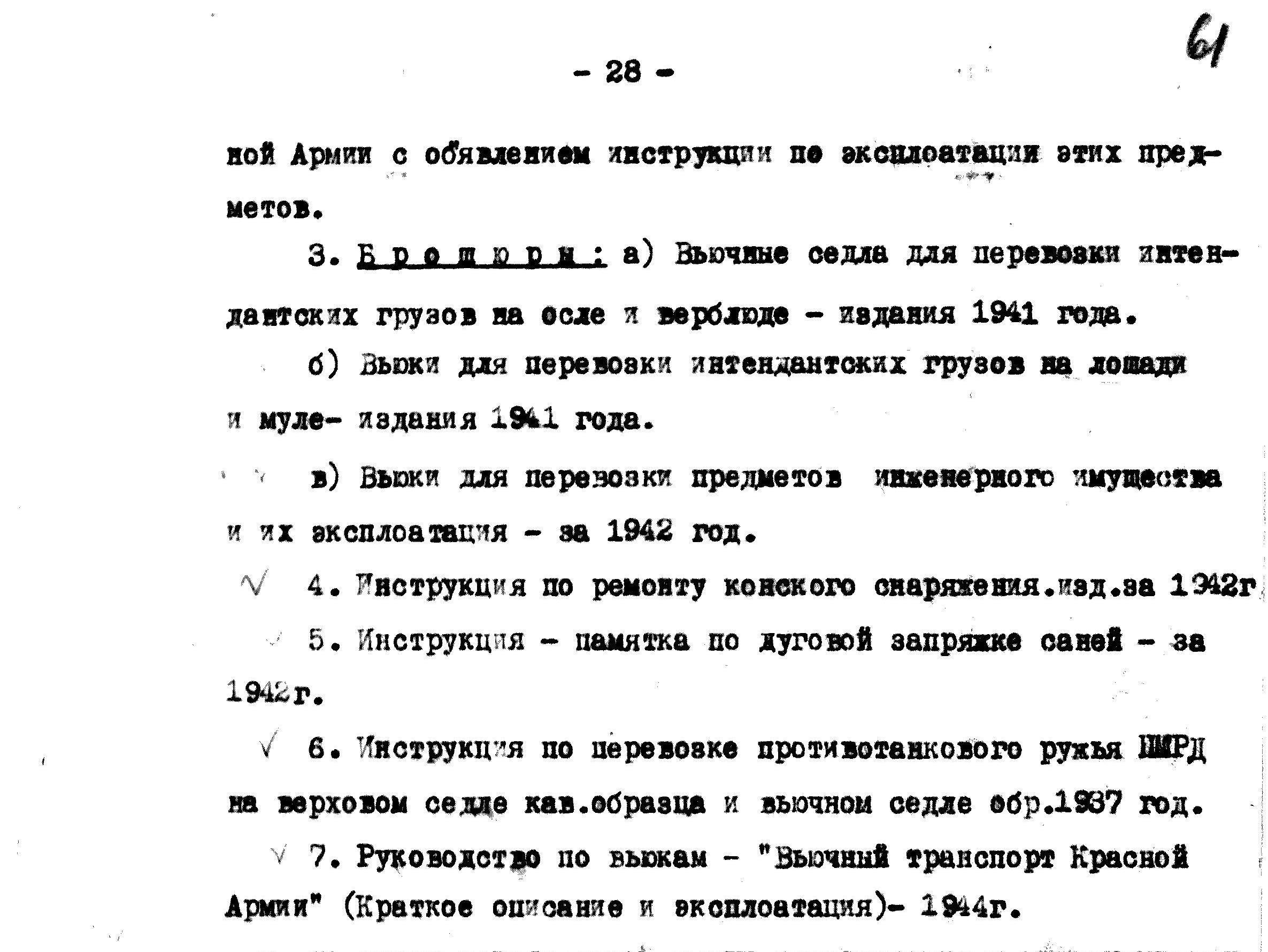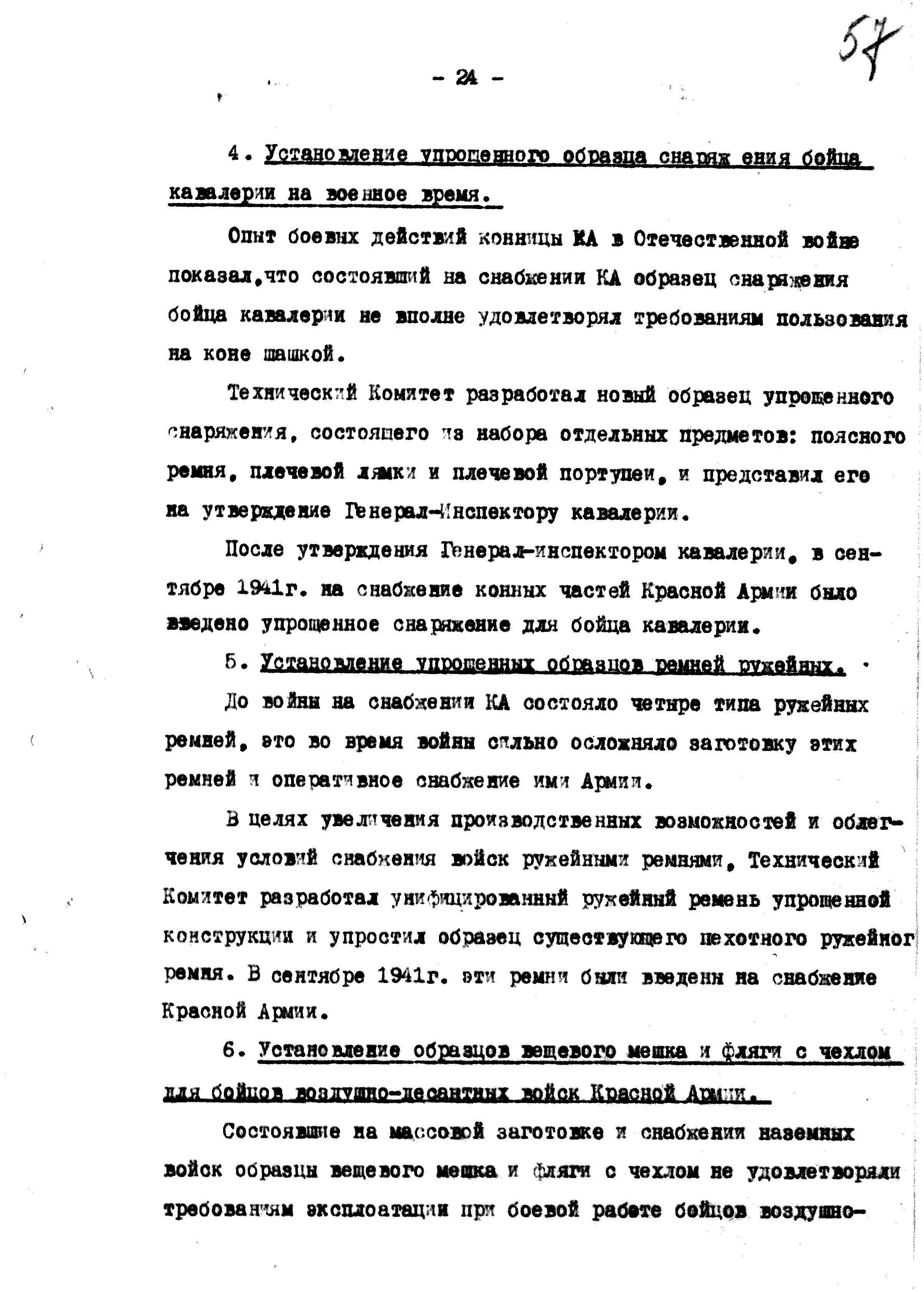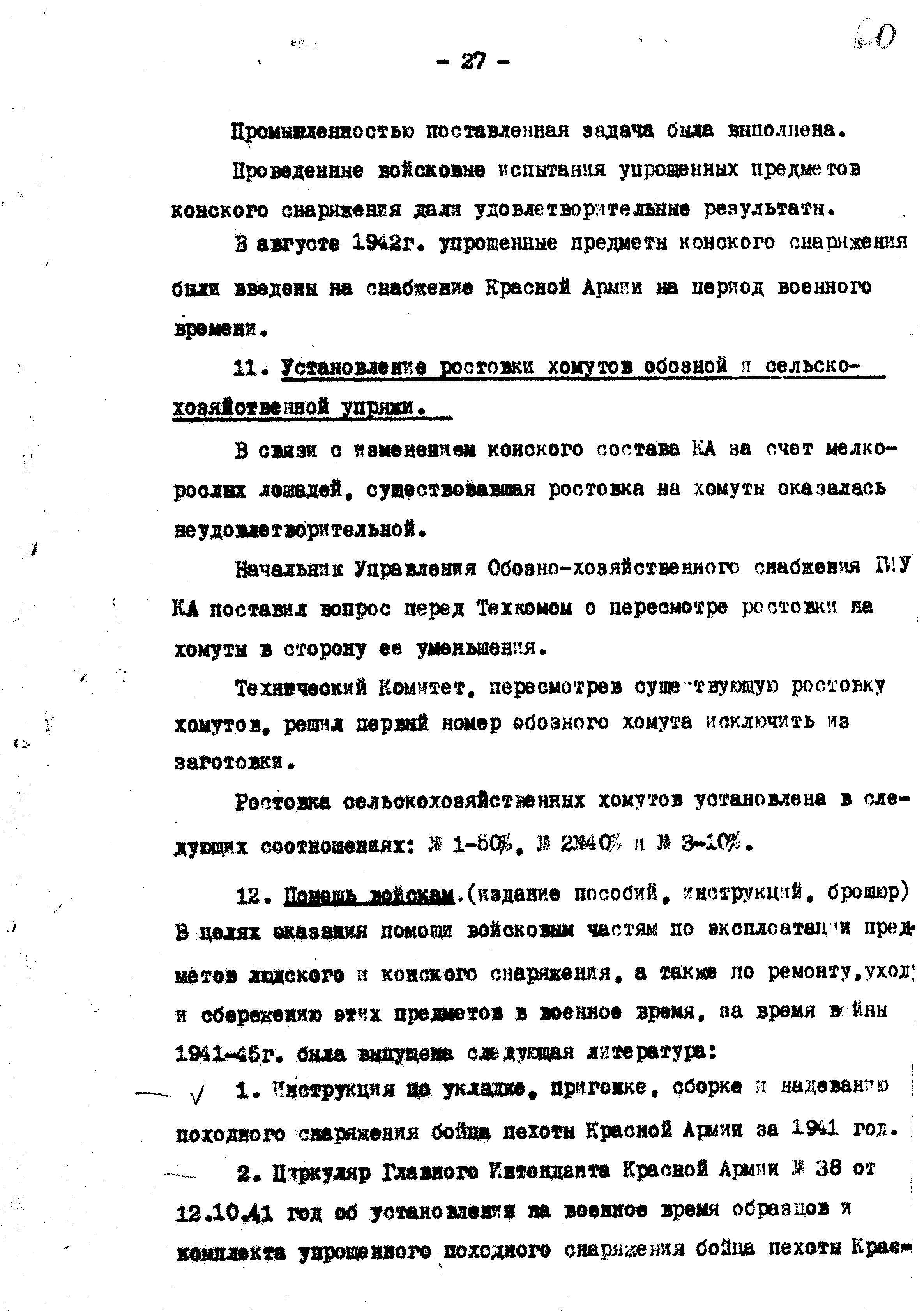 По какой причине объединили в один раздел людское и конское снаряжение, не совсем понятно. При всех реорганизациях этими вопросами занимались разные секции Техкома. Видимо решили, что так удобнее читающему отчет.
