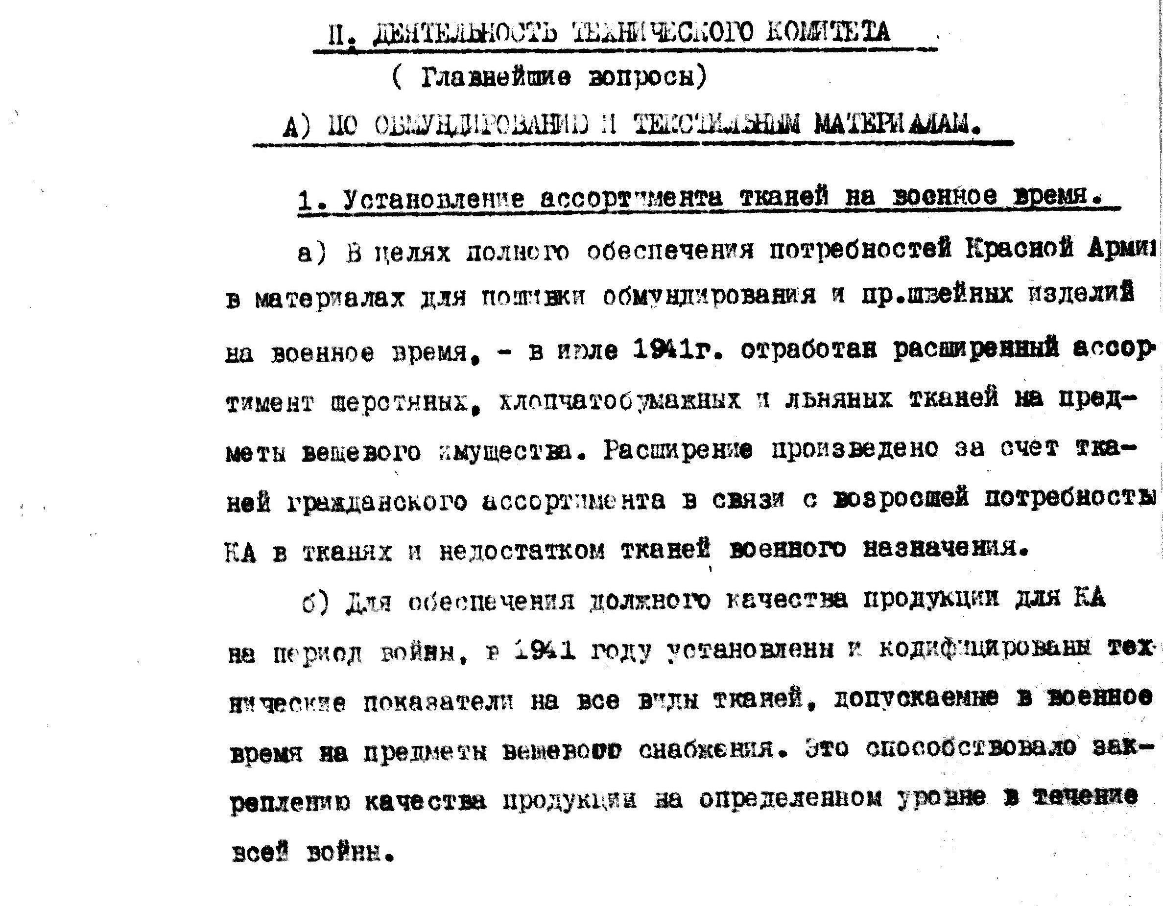В отчёте, посвященном деятельности Технического Комитета, не мало моментов, интересных скорее всего,профильному специалисту. Все эти дубящие вещества, добавки в ткани, допуски и ростовки - разве можно этим заинтересовать. Но всё это очень важная и сложная работа, от качества которой зависело не мало. К тому же, в документе есть моменты, мало известные не только читателю, но и тем, кто занимается этими вопросами сегодня.