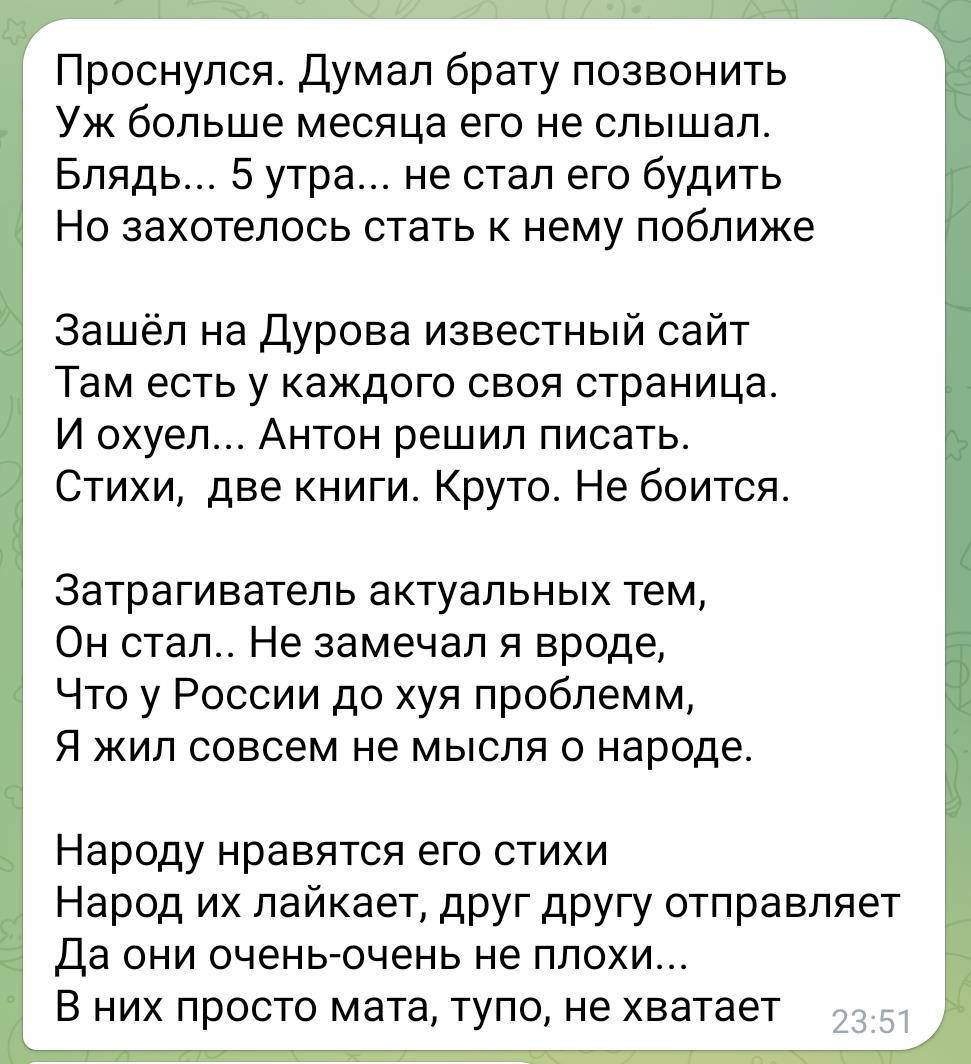 Автор: Антон ПанфиловЭтот пост скорее бы надо записать в самопиар, но там же нет +/- а мне бы хотелось, что б его творчество оценили...