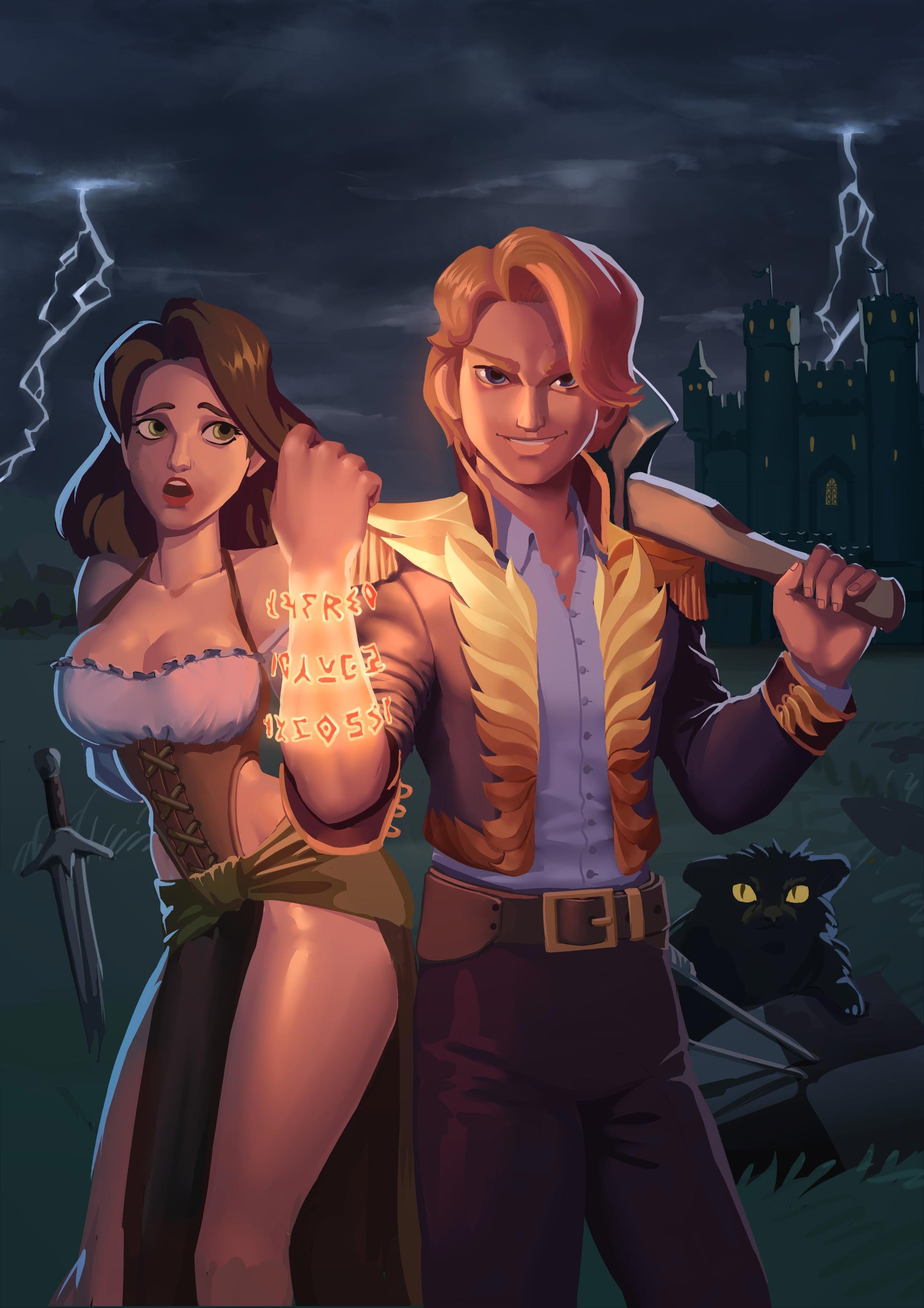 В наличие все обязательные атрибуты: крутой мальчик с топором, красивая девочка в интересном наряде и котик, а котиков, как известно, любят все.