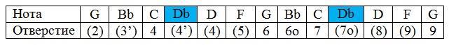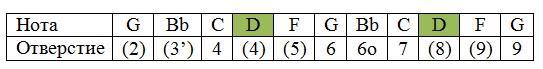 А имеем мы то, что в верхнем регистре нам необходимо уметь играть overblow на 6 отверстии и overdraws - на седьмом.