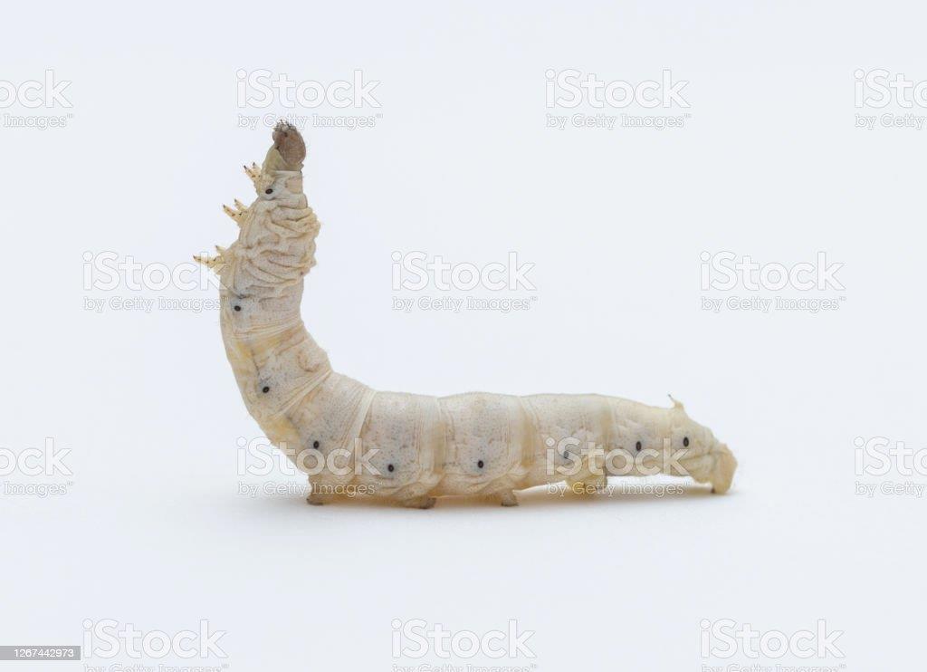 Две фигурки гусеницы шелкопряда были найдены в подземной части постройки. Они сделаны из бронзы и покрыты золотом, которое во многих местах отслоилось. Гусеницы выглядят упитанными. Голова, а также грудная и брюшная части отлиты очень аккуратно и точно. Тело разделено на девять сегментов, включая голову. Ножки грудной, брюшной и хвостовой частей полностью сохранены, со стороны же верхней части, то есть на спине, заметен маленький хвост. Положение гусеницы говорит о том, что она в этот момент выделяет нить для завивки кокона.