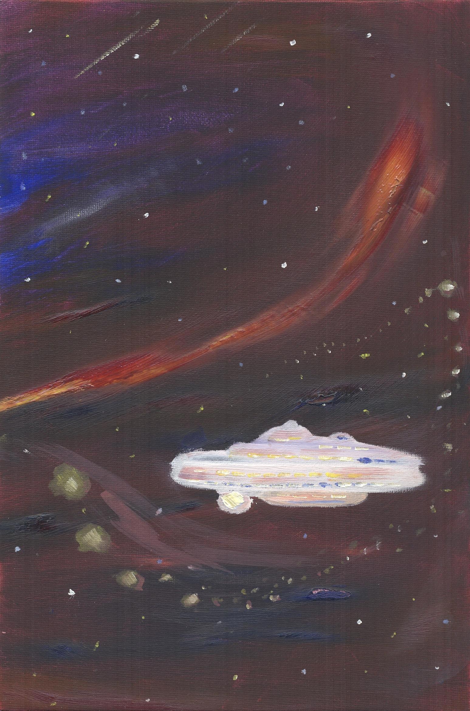 Станция постепенно удалялась. Планета, сперва занимавшая весь обзор, становилась всё меньше и меньше. Очертания АрдиумDG размывались, краски тускнели... Вот отделились последние стропы. Звездолёт постепенно набирал скорость, и вскоре Ролдон напоминал аккуратный светящийся шарик, плывущий в облаке туманности, а станция превратилась в игрушку.