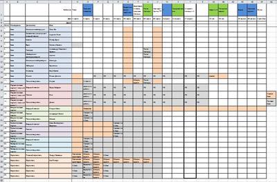 Насколько в «Оранжевой» получилось разобраться с литературной стороной этих вопросов, судить а) не мне и б) наверное, рано (ещё треть, а то и больше, впереди), а вот для решения содержательной стороны я не могла не сделать табличку кто когда что делал (там всё краткое содержание, поэтому специально мелко).