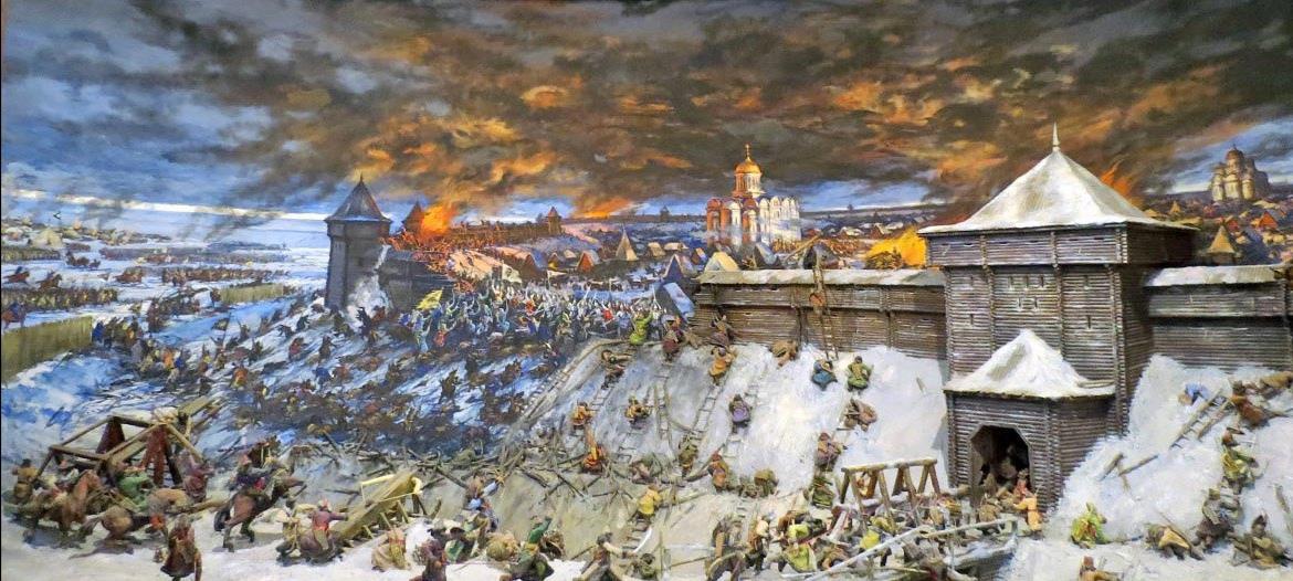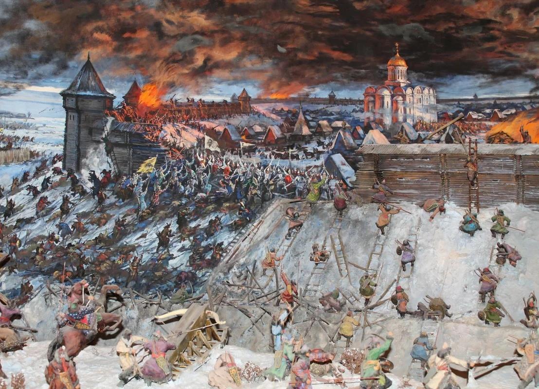 Вот, кстати, отличная диорама штурма Рязани Батыем (тут есть и пороки, и осадное ограждение слева, у меня представленное немного иначе):