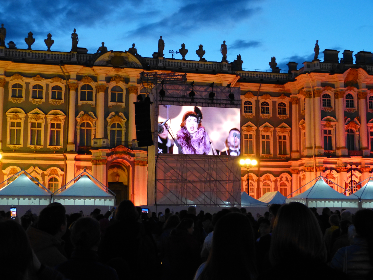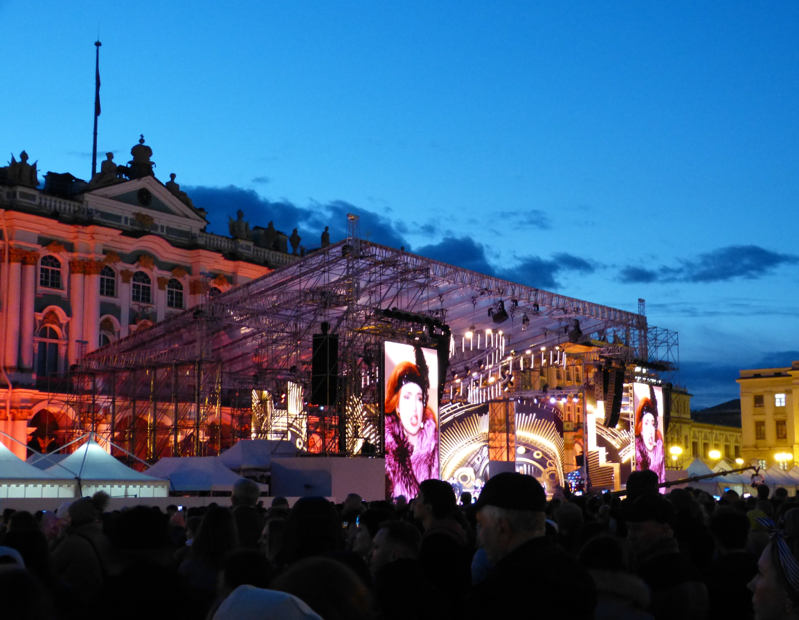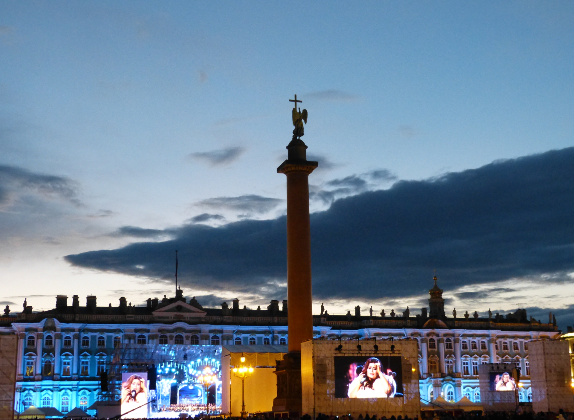Второй концерт давали возле львов Дворцовой пристани. Но народ собирался на Дворцовой набережной, чтобы наблюдать развод Дворцового моста и Фестиваль огня.