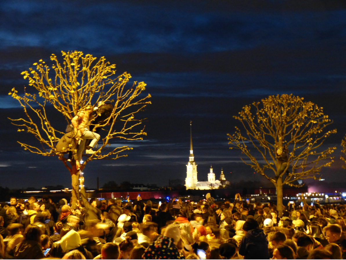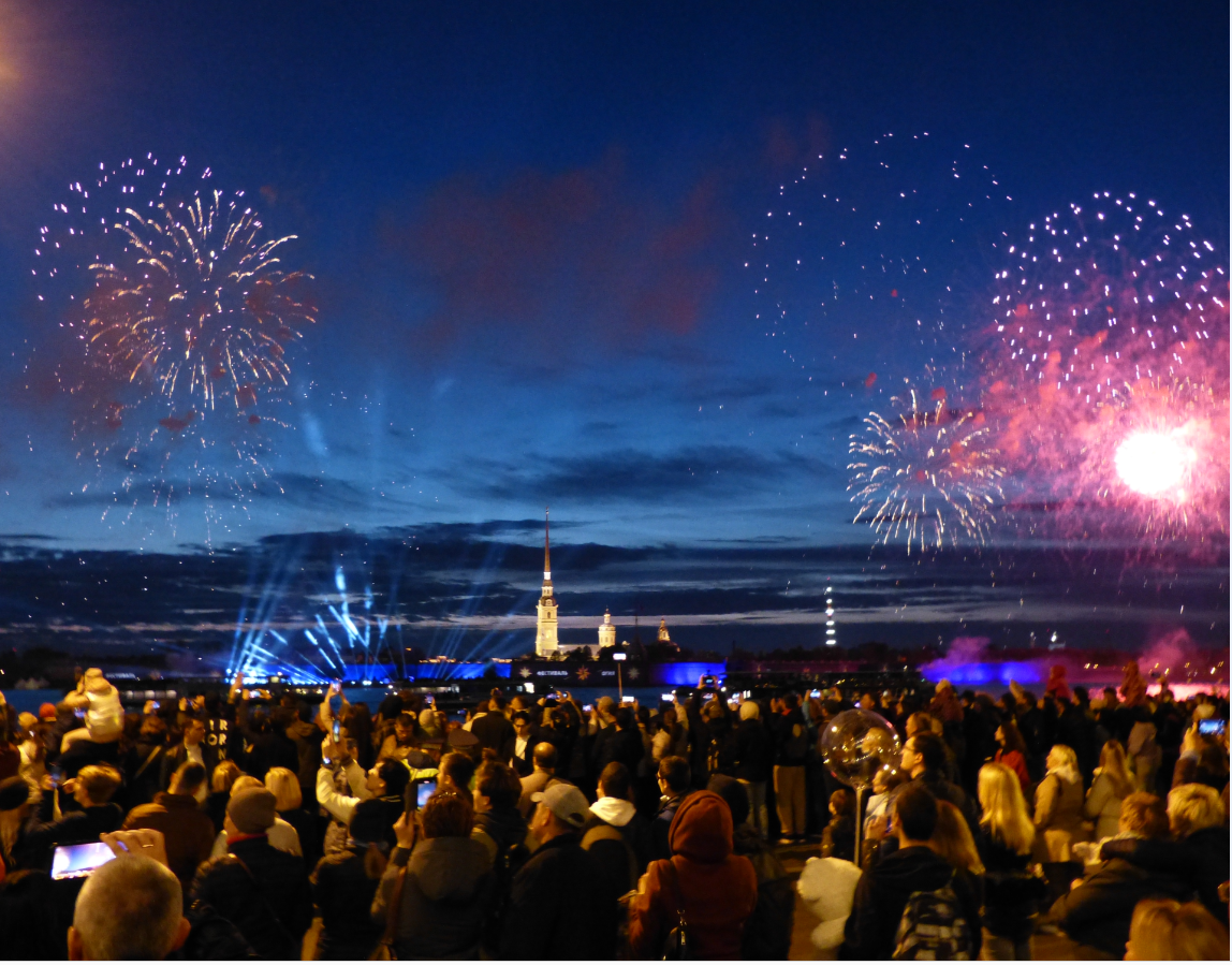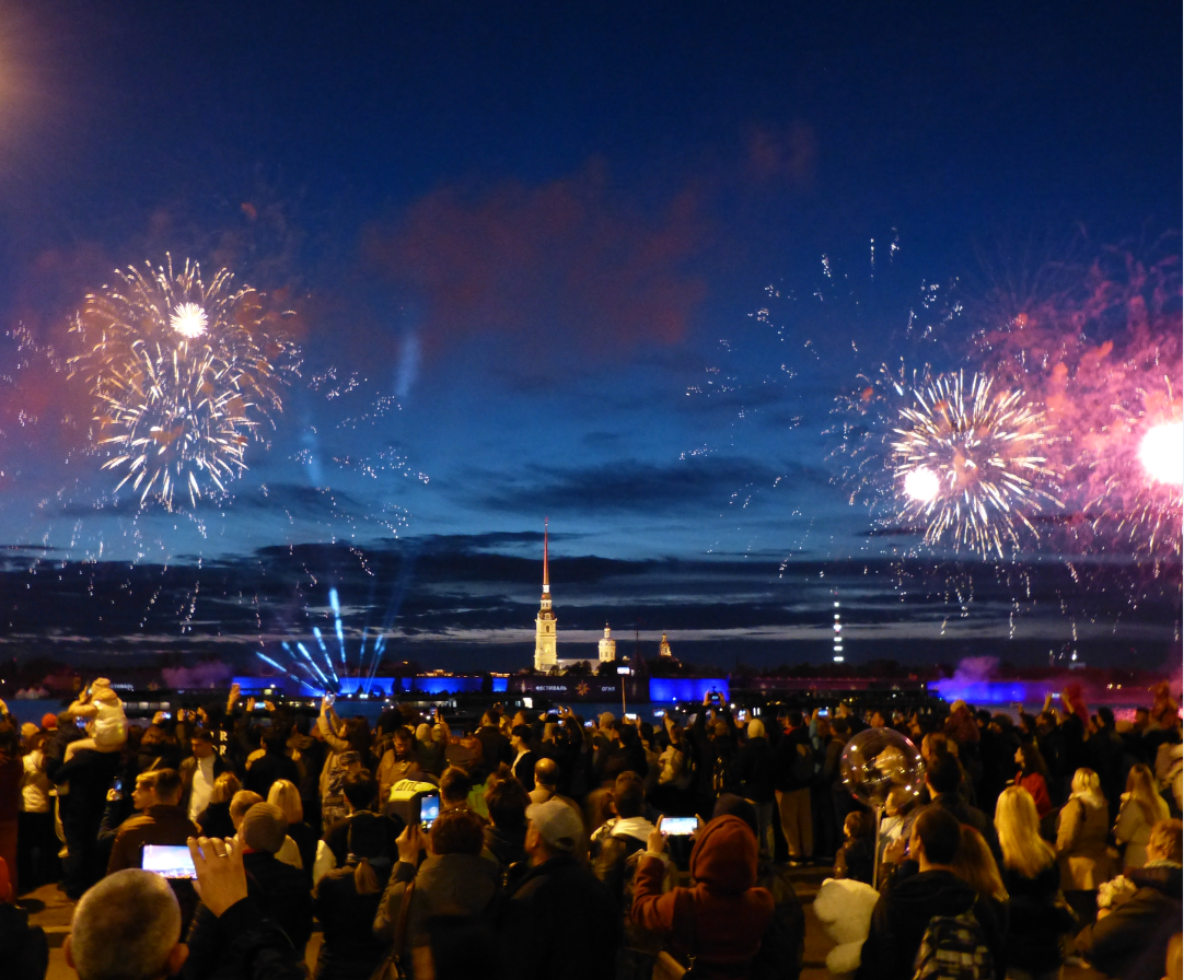 В 2022 году 27 мая пришлось на пятницу, так что самые интересные мероприятия дня города проводились в субботний вечер и в ночь на воскресенье. Нам посчастливилось побывать в Северной столице именно в это время.