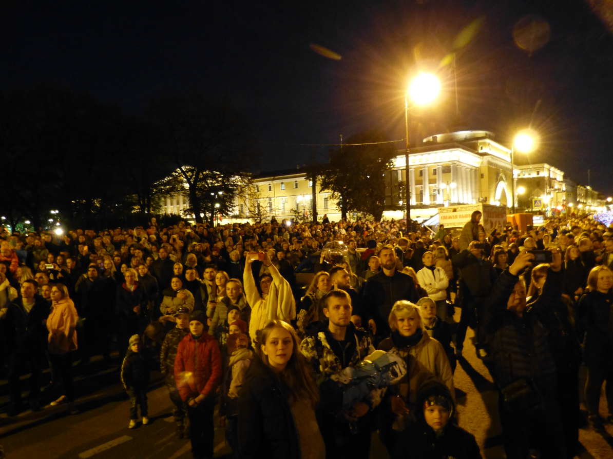 Это было великолепно! Народу на Дворцовой набережной собралось огромное количество.