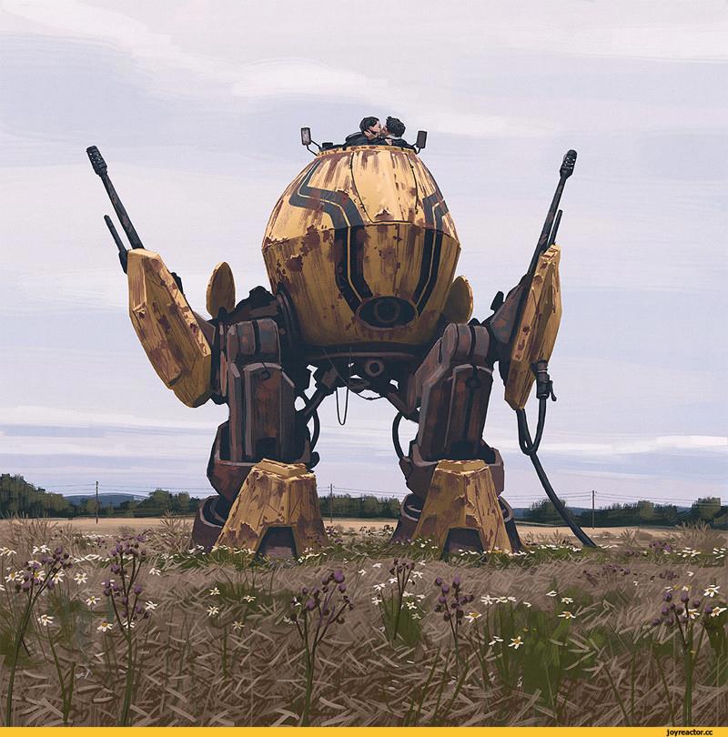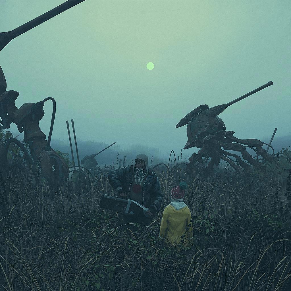 В последствии Столенхаг превратил хобби в карьеру, и до сих пор пишет те же пейзажи, вот только теперь они наполнены роботами, динозаврами, и невероятными машинами.
