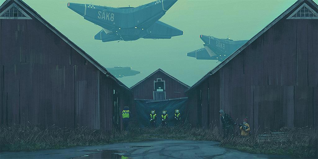 Технологичные, но гибнущие миры; обломки роботов и руины космических кораблей; динозавры и физические аномалии — всё это сюжеты множества картин Столенхага.
