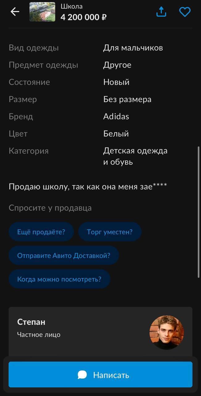 А продавец Леша даже нецензурных слов не нашел для описания родной школы, оценив ее куда дешевле: