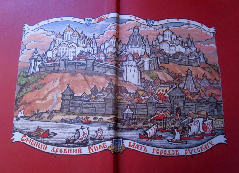 Картинки из книги с роскошными иллюстрациями Архипова, изданной к 1500-летию Киева, "Повесть временных лет" в отрывках.