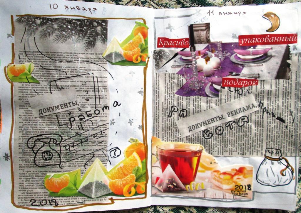 так выглядели мой 10 и 11 день. Примерно так прошли и 10 -11 месяц. Правда, тогда как я и подозревала, в рабочие дни нового года времени даже на почеркушки в моей тетради не было. Поэтому я сделала три последние страницы одним махом, чтобы завершить начатое к старому новому году.