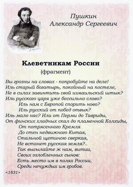 N.B. Одно из моих самых любимых стихотворений Пушкина, очень актуальное сегодня "Клеветникам России"