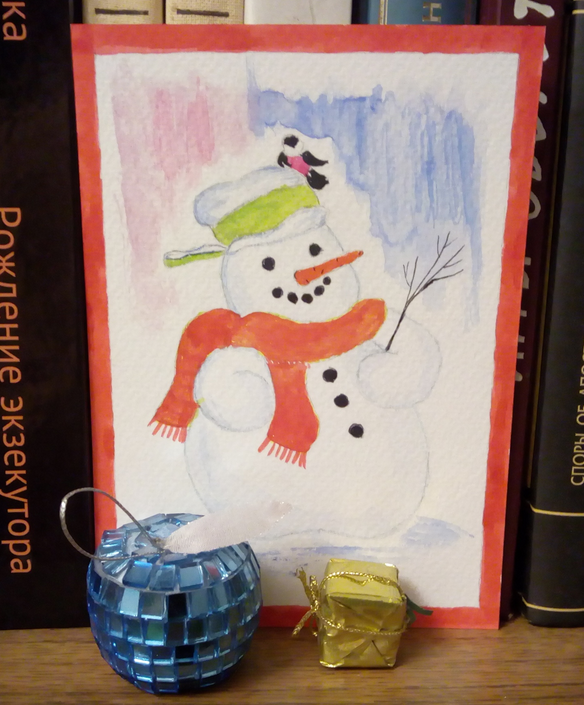 Вот и сегодня мне пришла открытки от Тани Барановой. Очень новогодняя и душевная. Со снеговиком)
