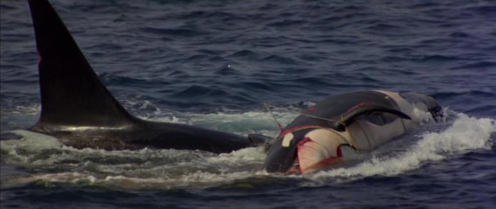 Так что никакой шедевр и не планировался, а тем паче культовый фильм. Предполагался фильм категории «Б», задача которого собрать кассу и больше ничего. И первая сцена фильма, когда касатка в один укус расправляется с белой акулой – как раз точно и указывает на это: новый фильм, новые челюсти, больше мяса!