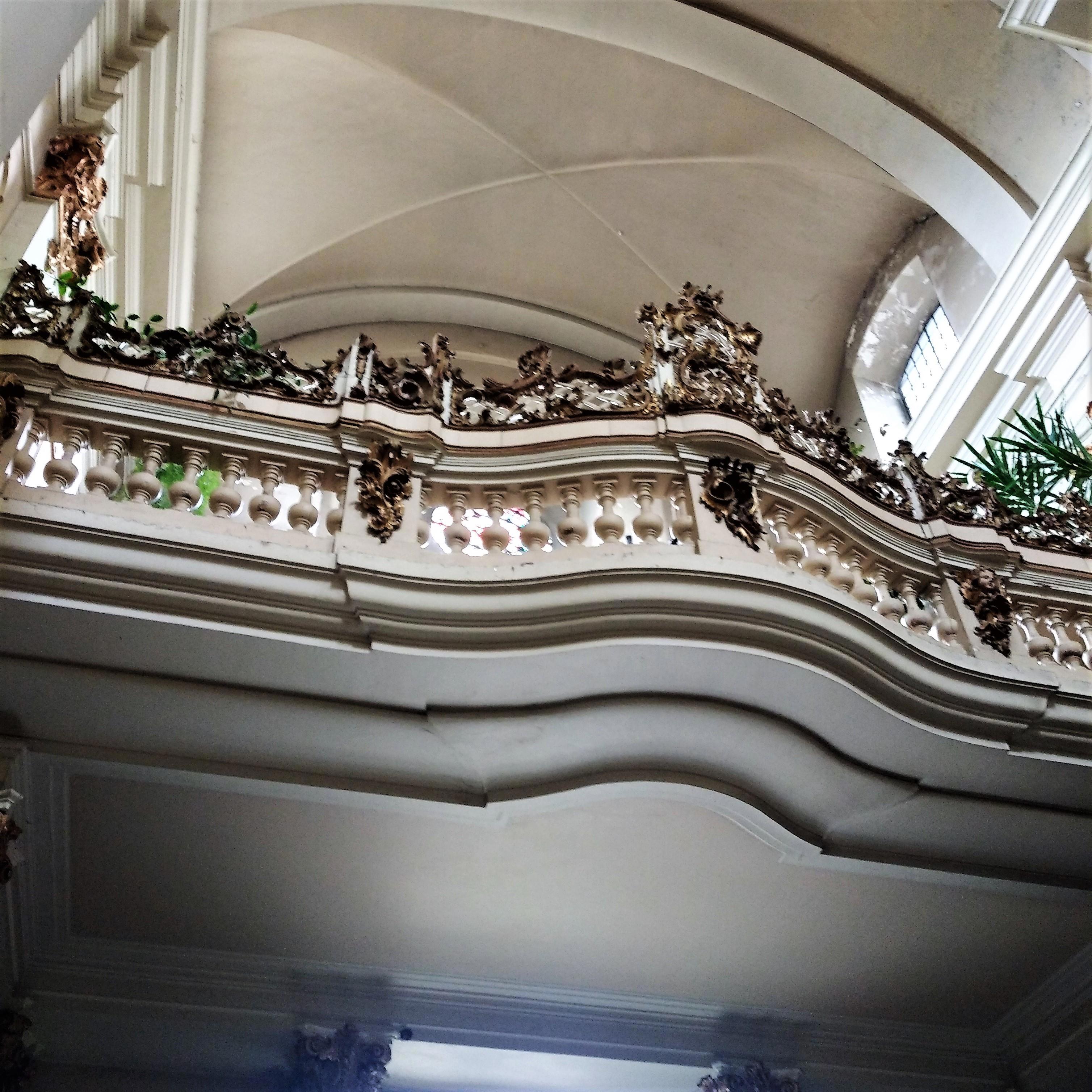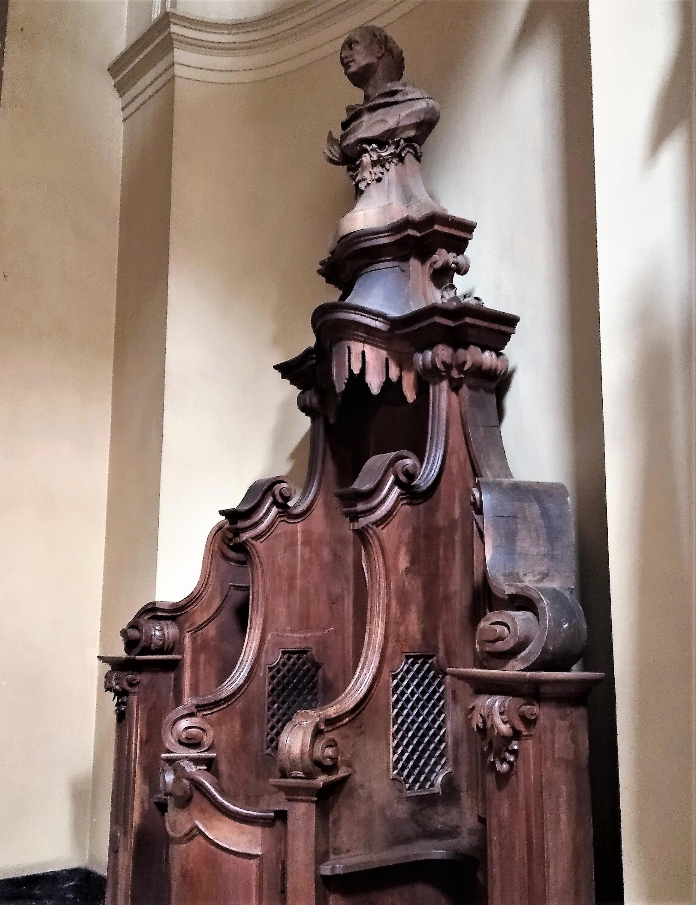 Старинная исповедальня (целиком не влезла). В ней ясные панны в густых вуалях покаянно шептали в окошко: benedicite, sancto patri, quia peccavi, но у него такой голос!
