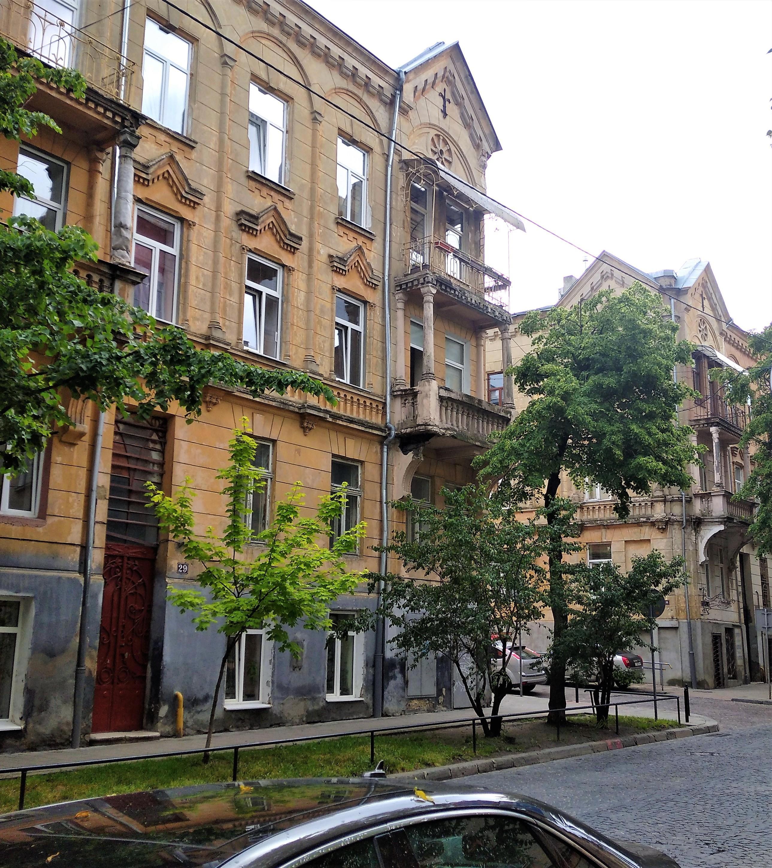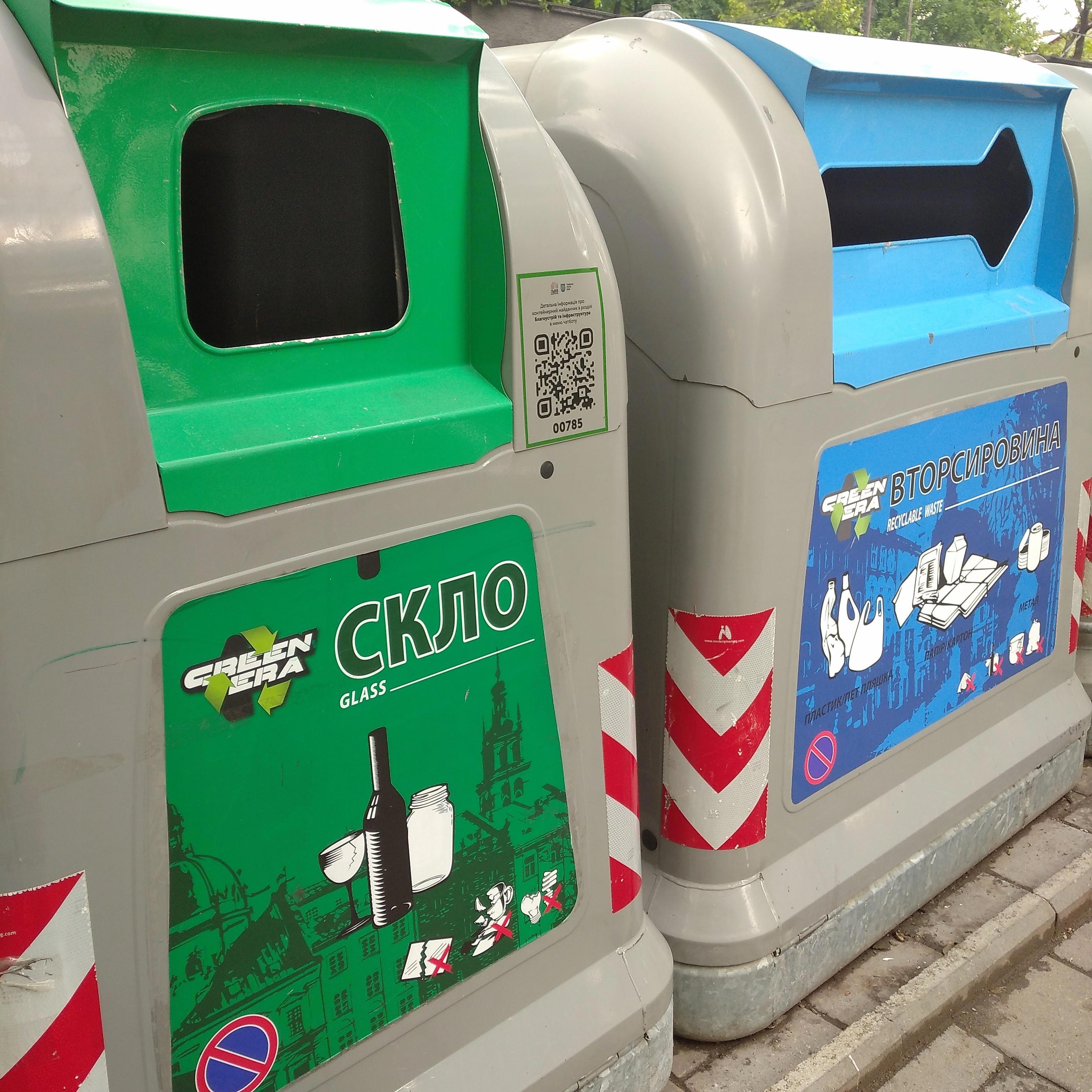 Как вы уже поняли, большая часть дворов - внутренние и наглухо закрытые, поэтому львовские мусорки стоят на проезжей части, это постоянно удивляло. Вот машины ездят, вот стоят, припаркованные, а вот мусорка. У нас дворы с въездом и все мусорки спрятаны внутри. А тут снаружи, это странно и не очень эстетично.
