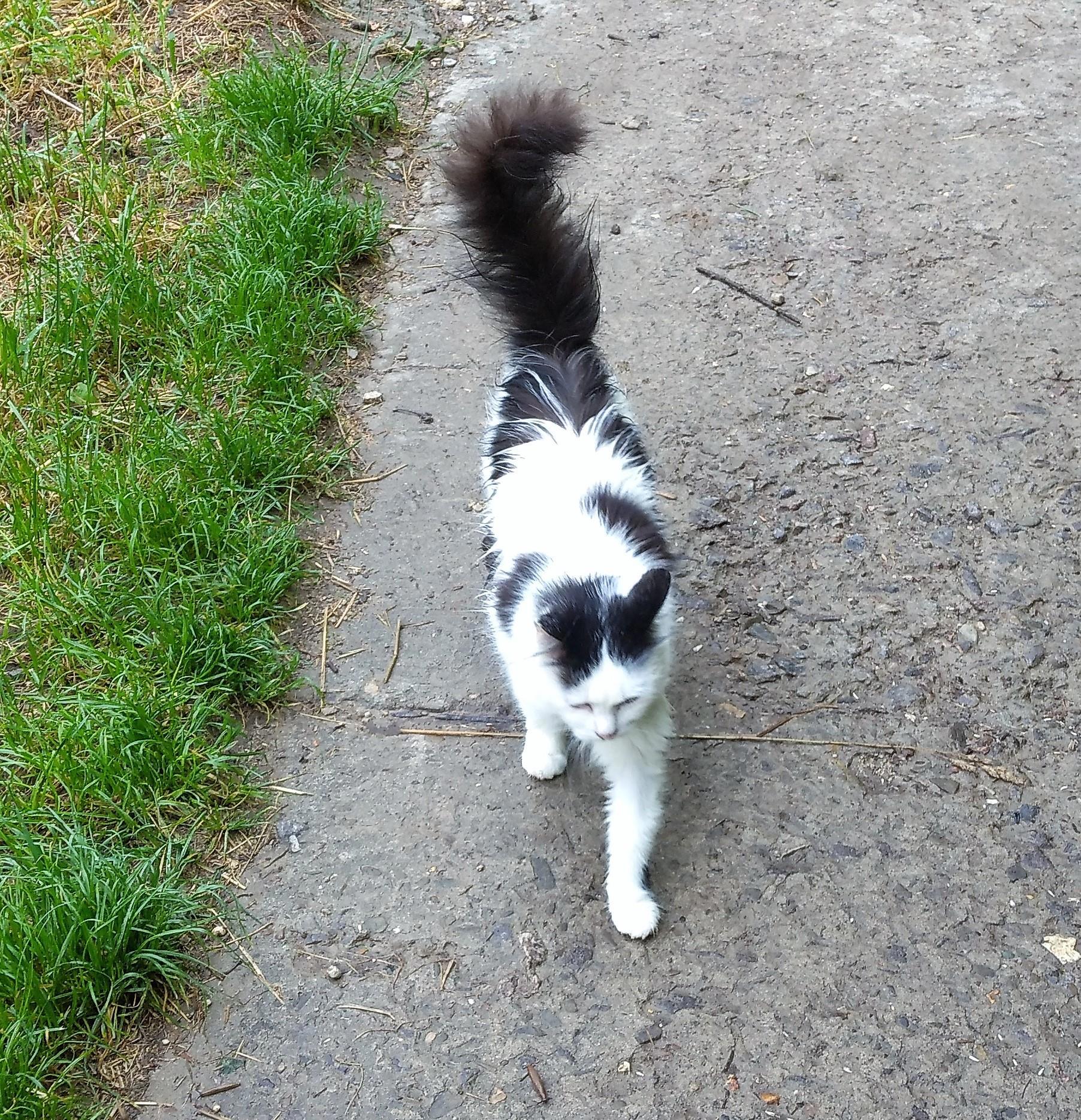 Почему мне кругом непременно встречаются чёрно-белые коты? Эта леди разрешила себя погладить: