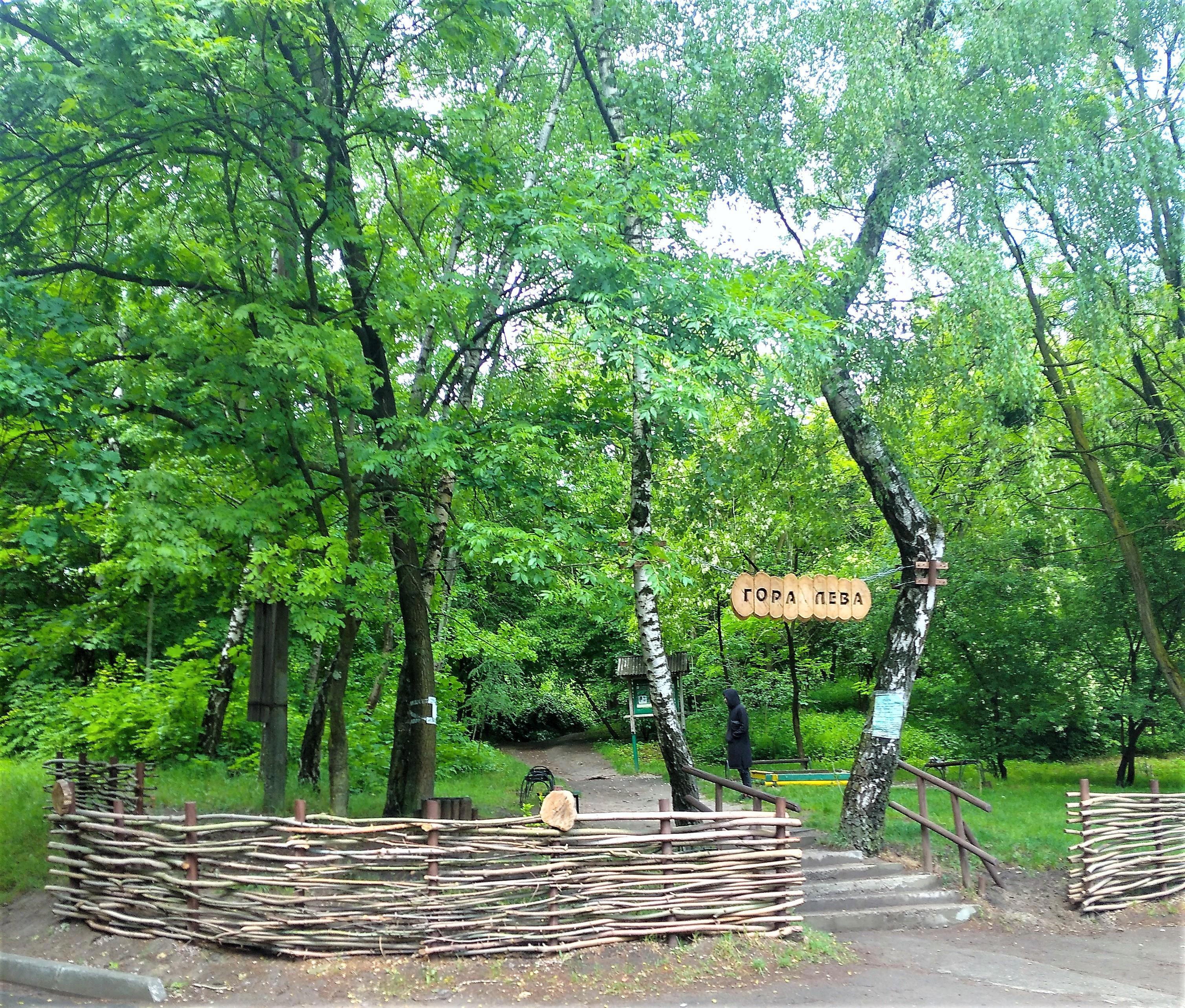 Вон тем желто-зелёным забором окружён приют для спасённых диких животных, которые каким-то образом попали в город и потеряли жизнеспособность в окружающей дикой среде. Там работают волонтёры и студенты ветинститута, есть коробочка для пожертвований на їжу для тваринок. Из хищников там живут лисы, барсук и еноты, эти - громко пахнут. Больше всего птиц. В одном вольере - куча увечных соколов, кто без крыла, кто одноногий.