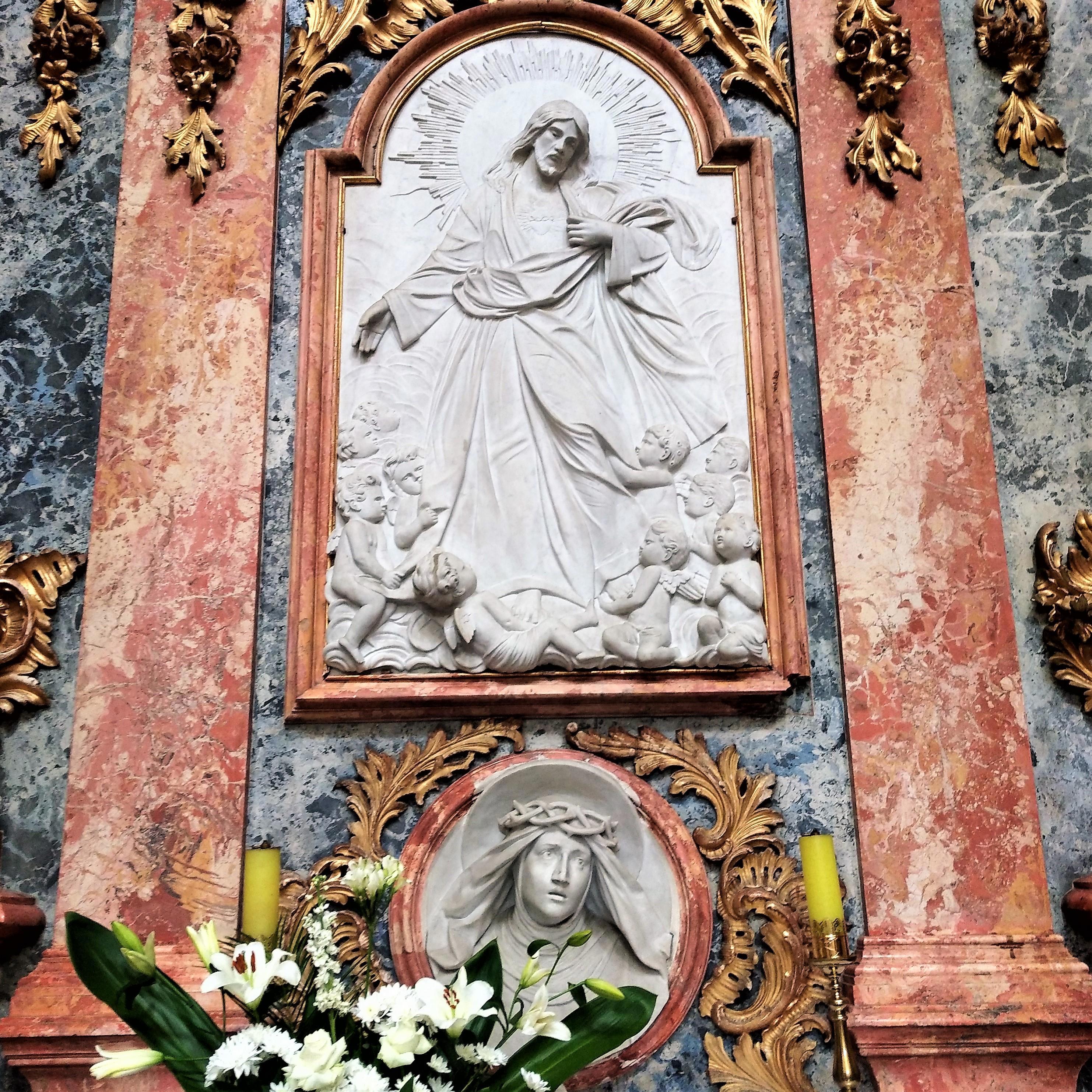 Сверху - бронзовые статуи святых, выходцев из ордена святого Доминика: