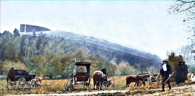 20 октября 1917 г., Франция, Бурбон-ле-Бен. Фотография немецкого дирижабля Zeppelin L49, сбитого во время Первой мировой войны.