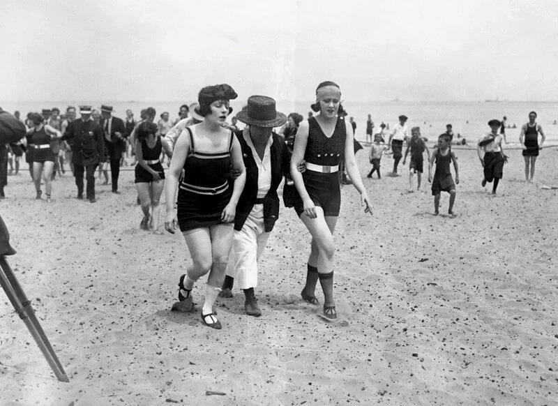 1922 год, США. Женщина–полисмен выводит двух девушек с пляжа из–за длины купальников.