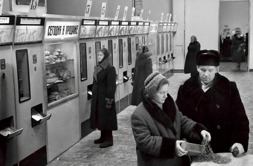 1969 год, СССР, Москва. Хлебный магазин самообслуживания. Без кассиров.