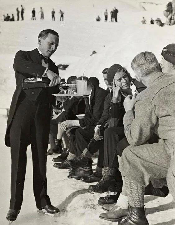 1932 год, Швейцария, Санкт-Мориц». Официант на коньках.